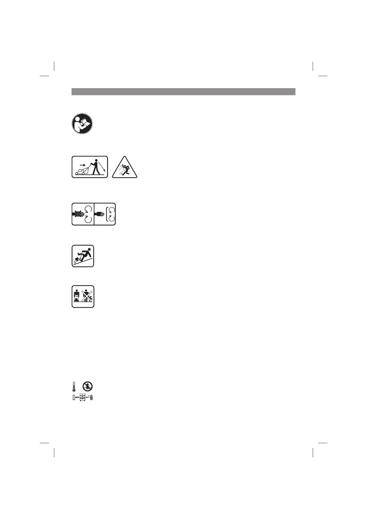 Risque de coupure des orteils et des doigts par la lame de tondeuse rotative.