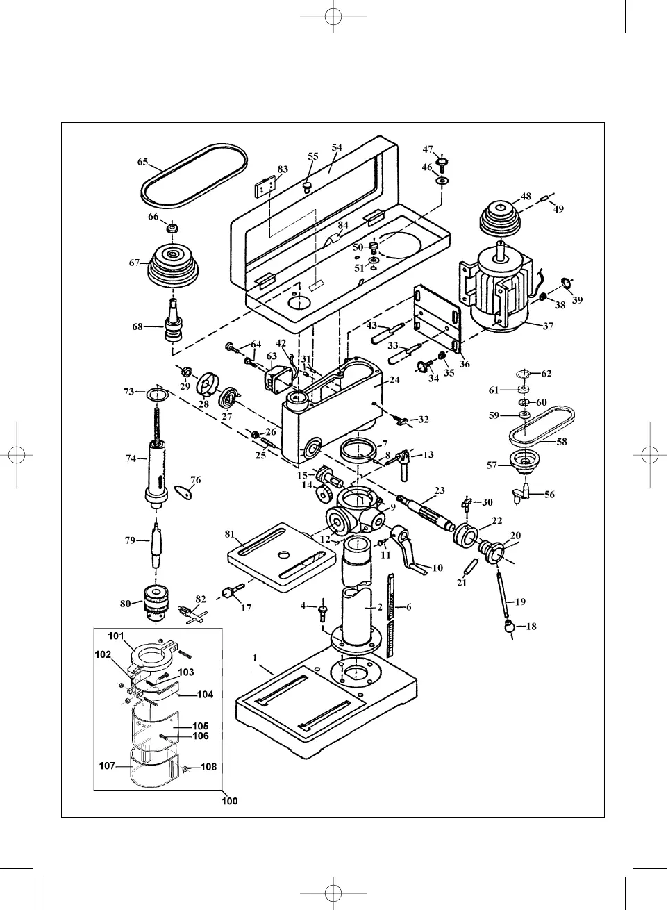 Ersatzteilzeichnung Säulenbohrmaschine SB 701 Art.-Nr.: 42.505.80 I.-Nr.: 91017