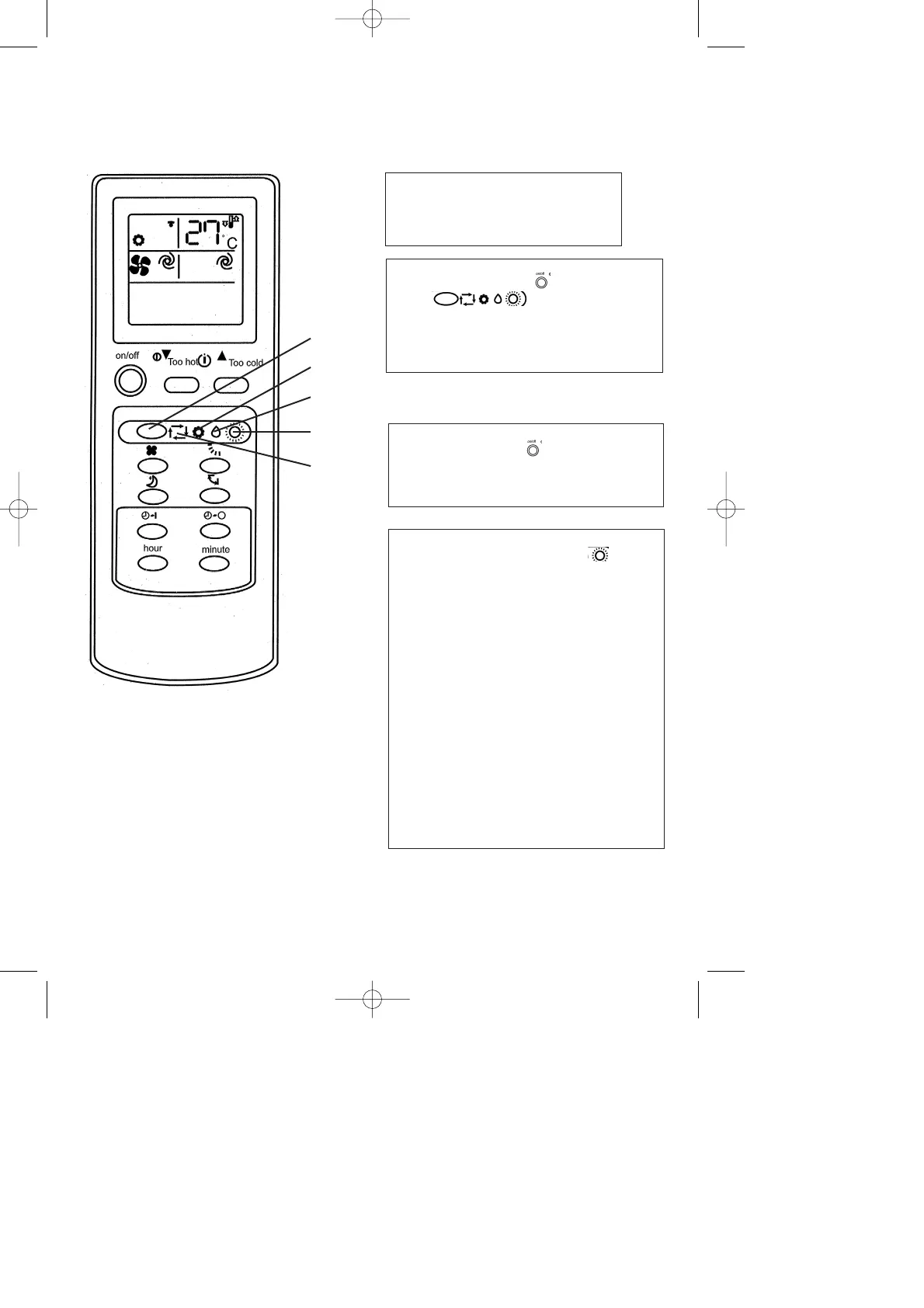 Selecting the mode function (cool (4b), dehumidify (4c), heat (4d)). Select Mode in order