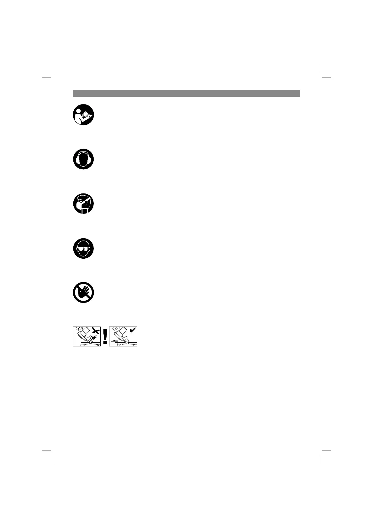Voorzichtig! Lichamelijk gevaar! Niet in het draaiende zaagblad grijpen.
