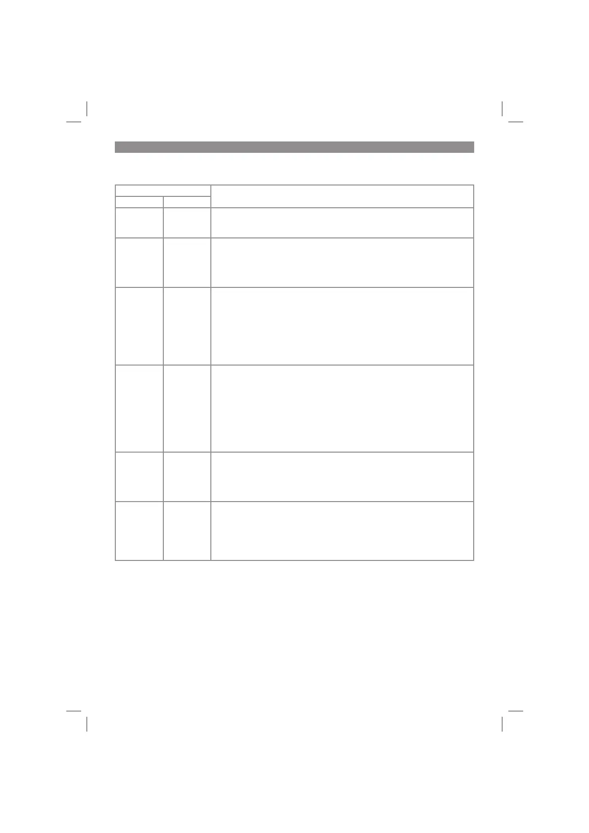 Indicator status Explanations and actions