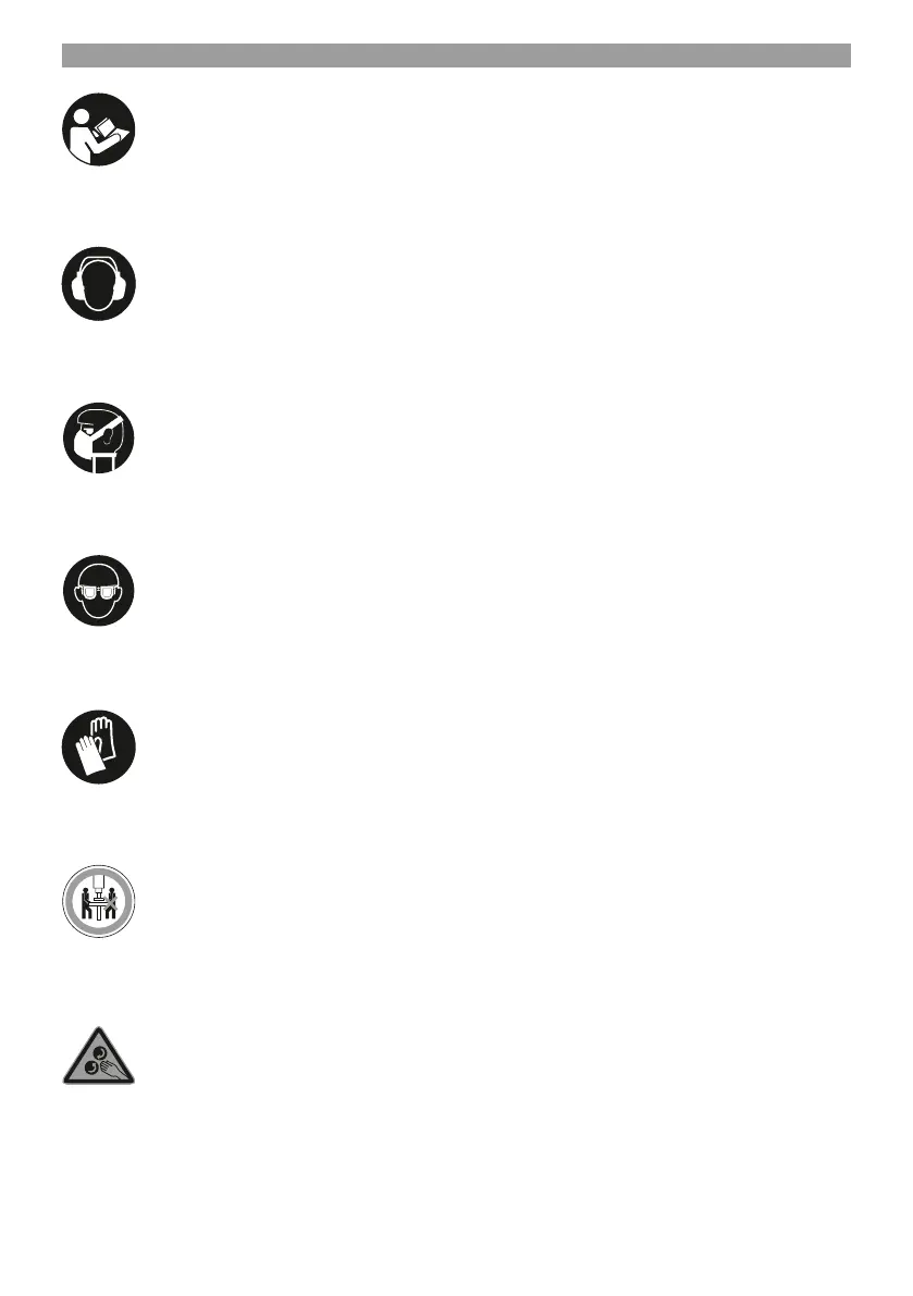 Forsigtig! Brug høreværn. Støjudviklingen fra maskinen kan forårsage høretab.