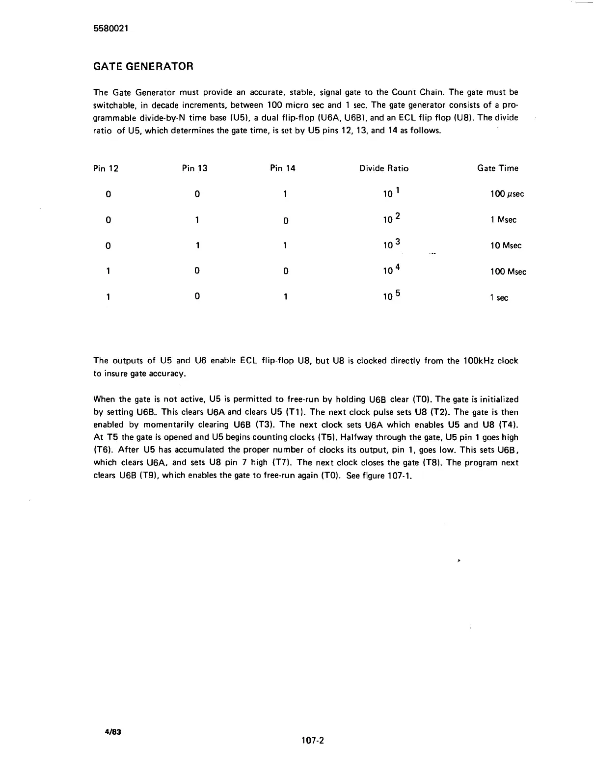 (T9), which enables the gate to free-run again (TO). See figure 107-1.