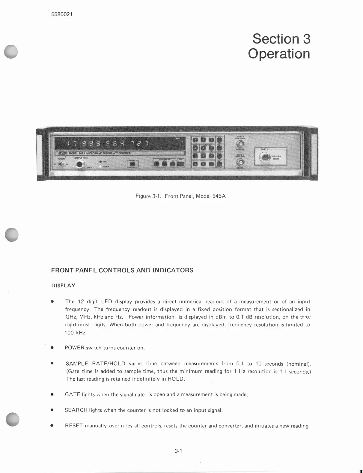 SAMPLE RATE/HOLD varies time between measurements from 0.1 to 10 seconds (nominal).