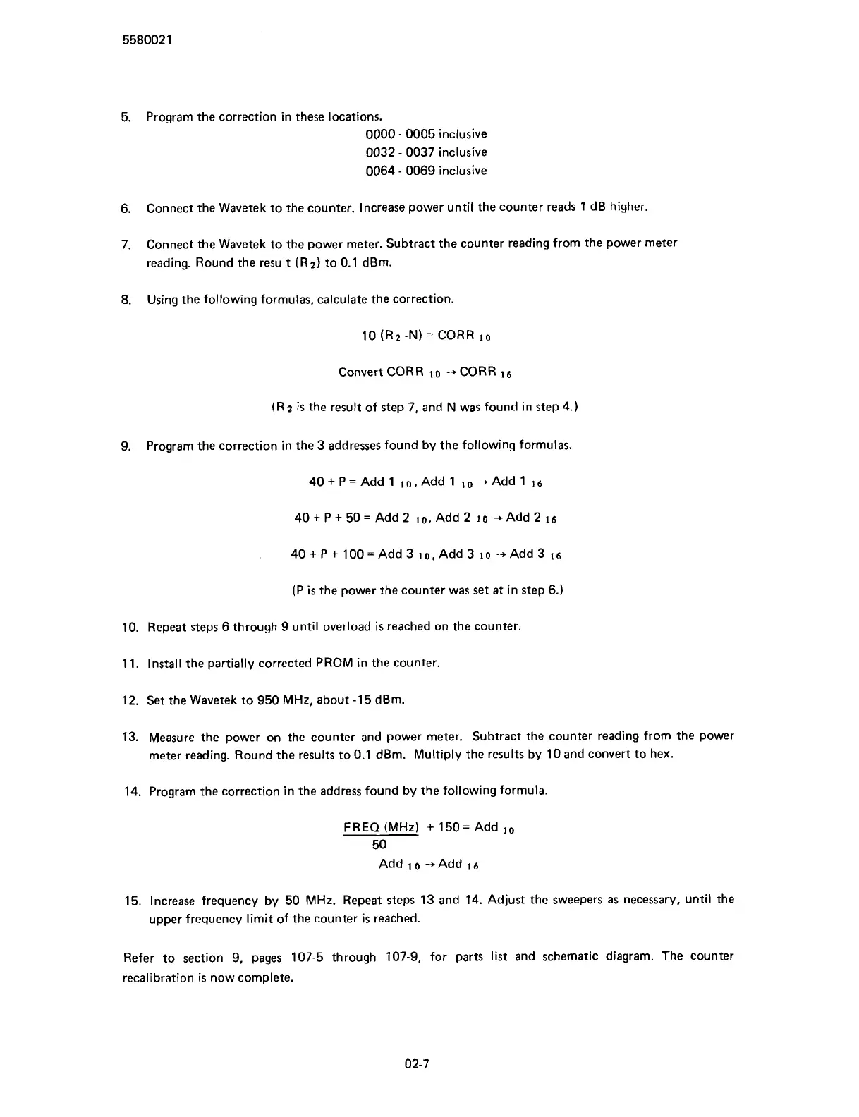 Connect the Wavetek to the power meter. Subtract the counter reading from the power meter