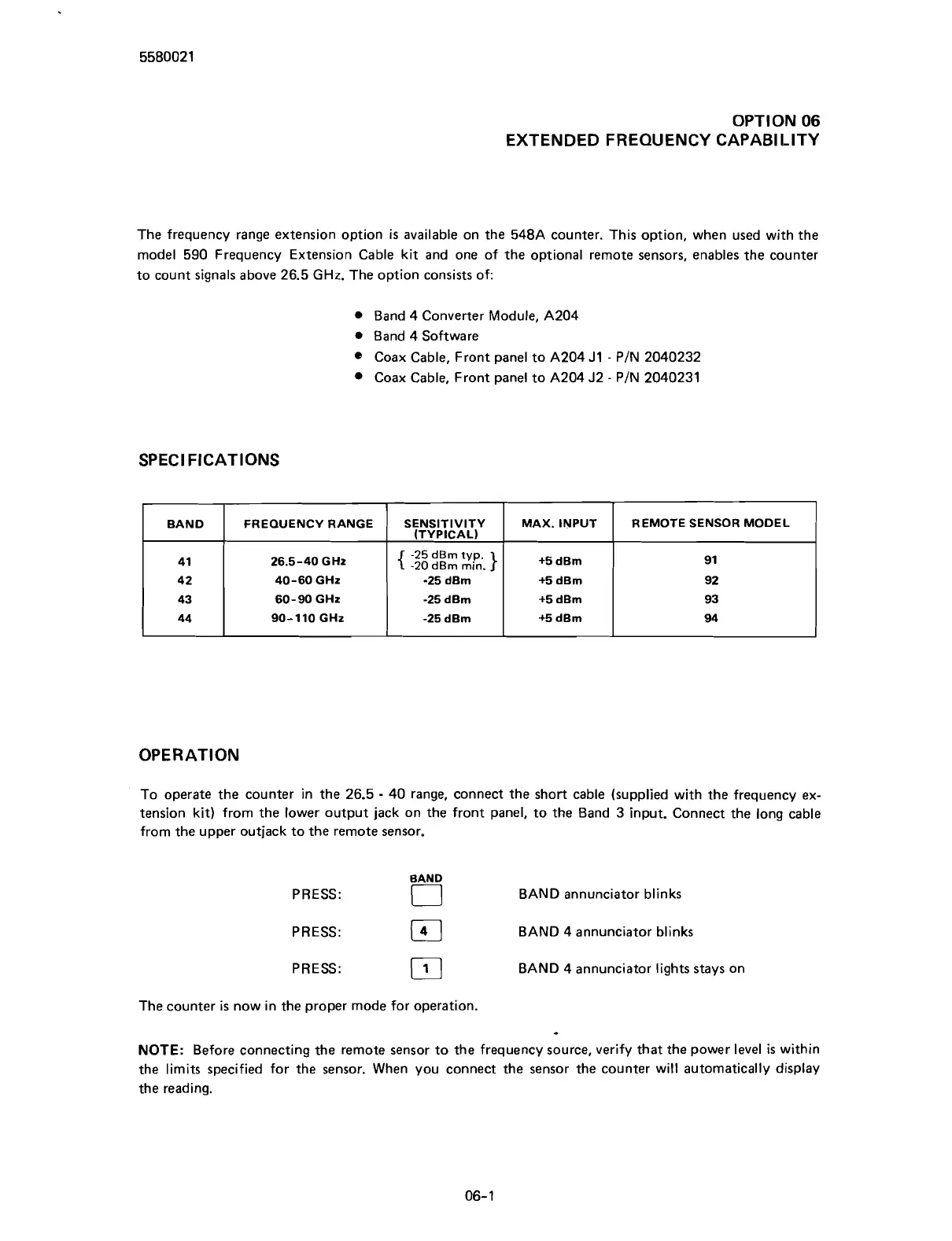 model 590 Frequency Extension Cable kit and one of the optional remote sensors, enables the counter