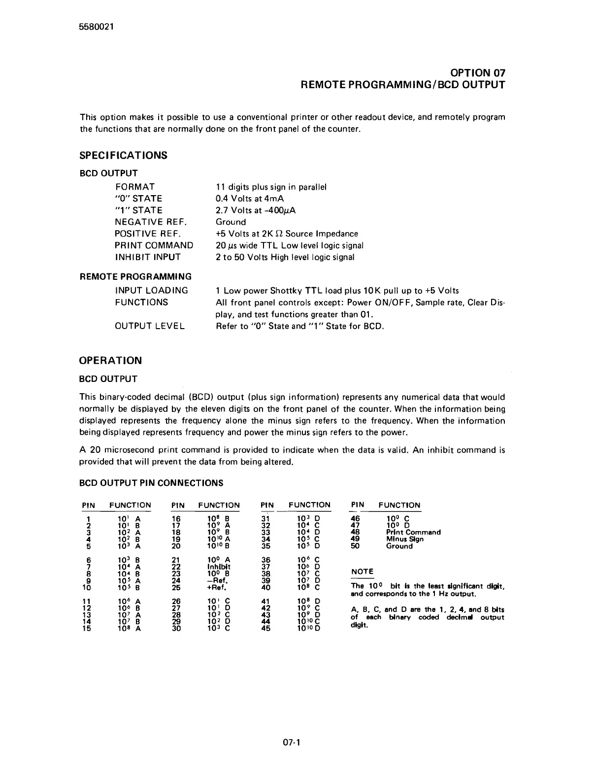 REMOTE PROGRAMWIING/BCD OUTPUT