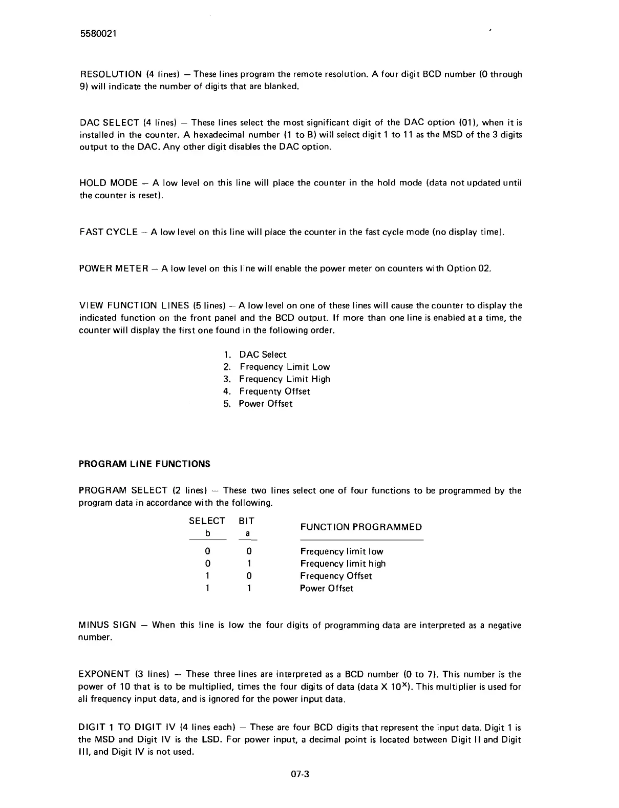 indicated function on the front panel and the BCD output. If more than one line is enabled at a time, the