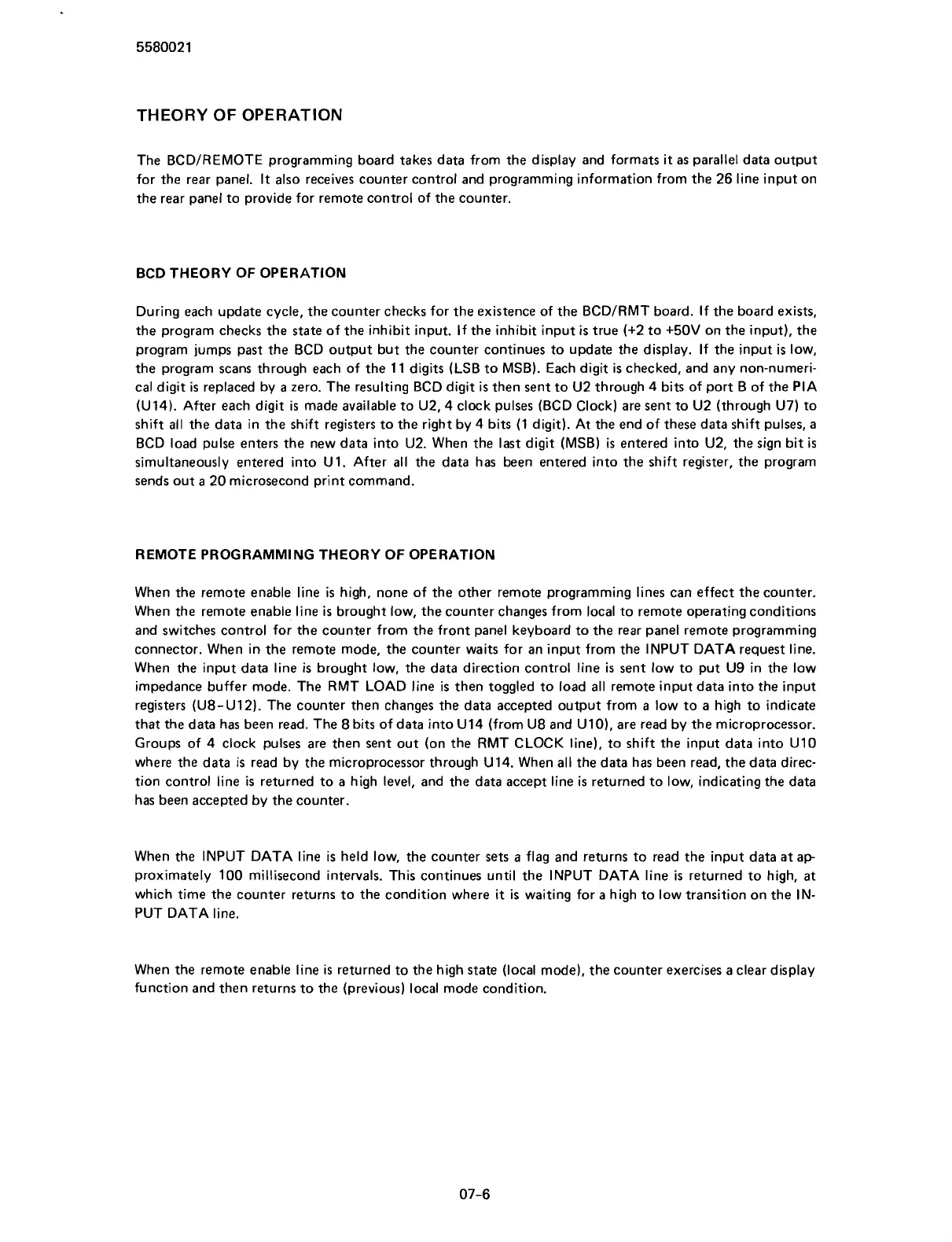 connector. When in the remote mode, the counter waits for an input from the INPUT DATA request line.