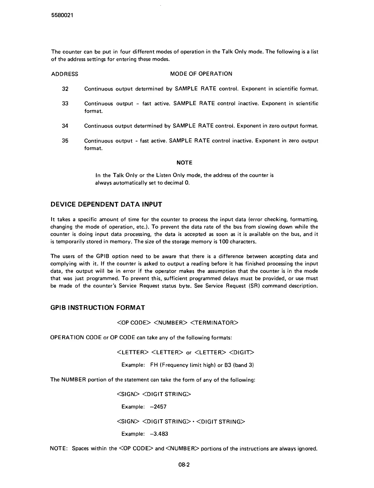 34 Continuous output determined by SAMPLE RATE control. Exponent in zero output format.