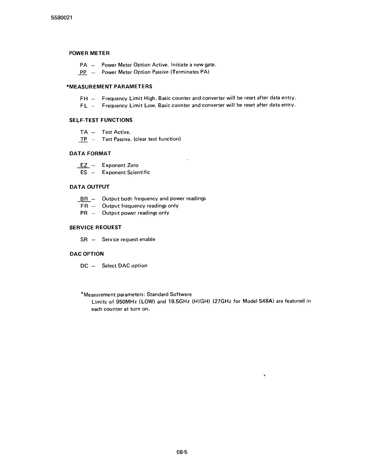 950MHz (LOW) and 18.5GHz (HIGH) (27GHz for Model 548A) are featured in