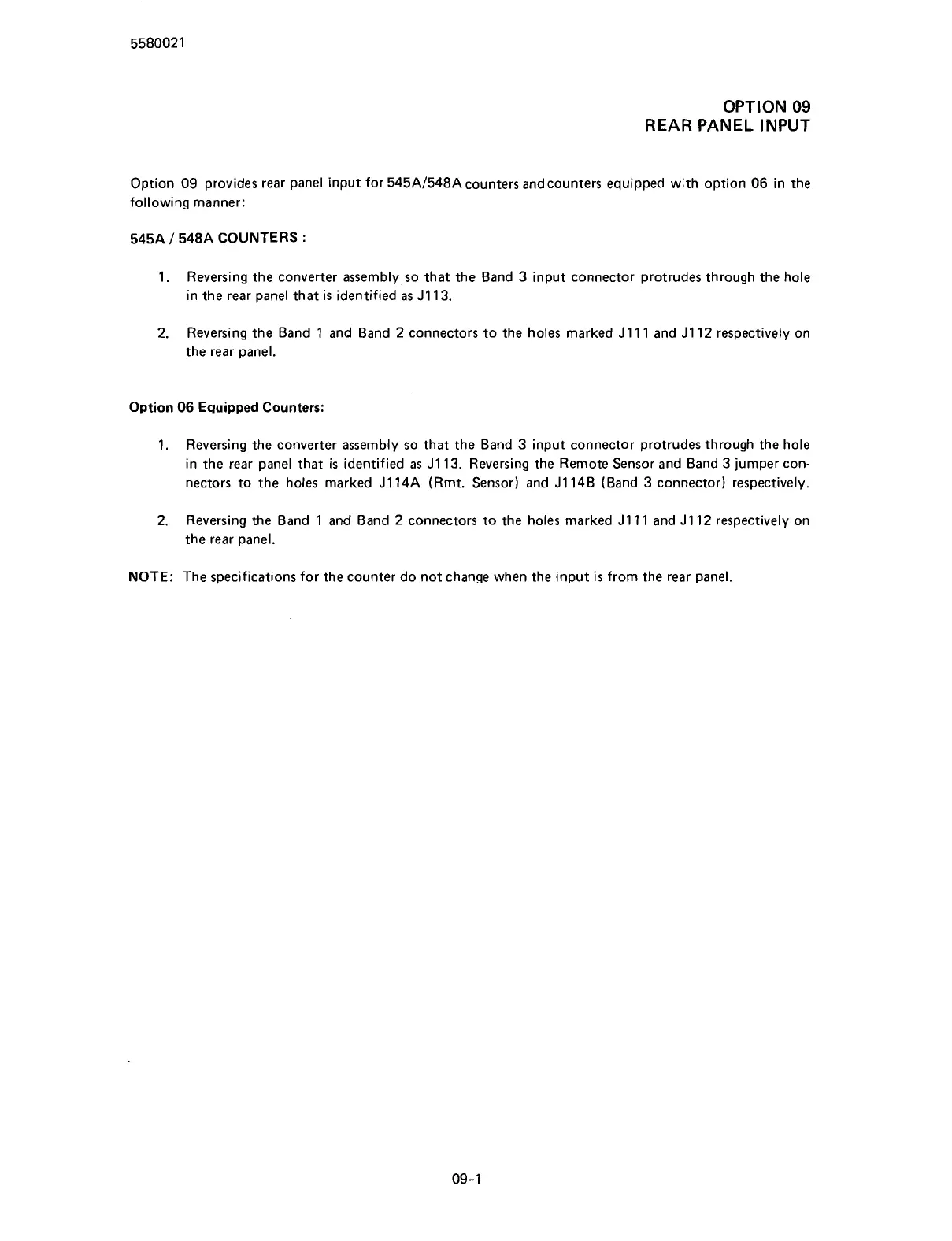 provides rear panel input for 545A1548A counters andcounters equipped with option