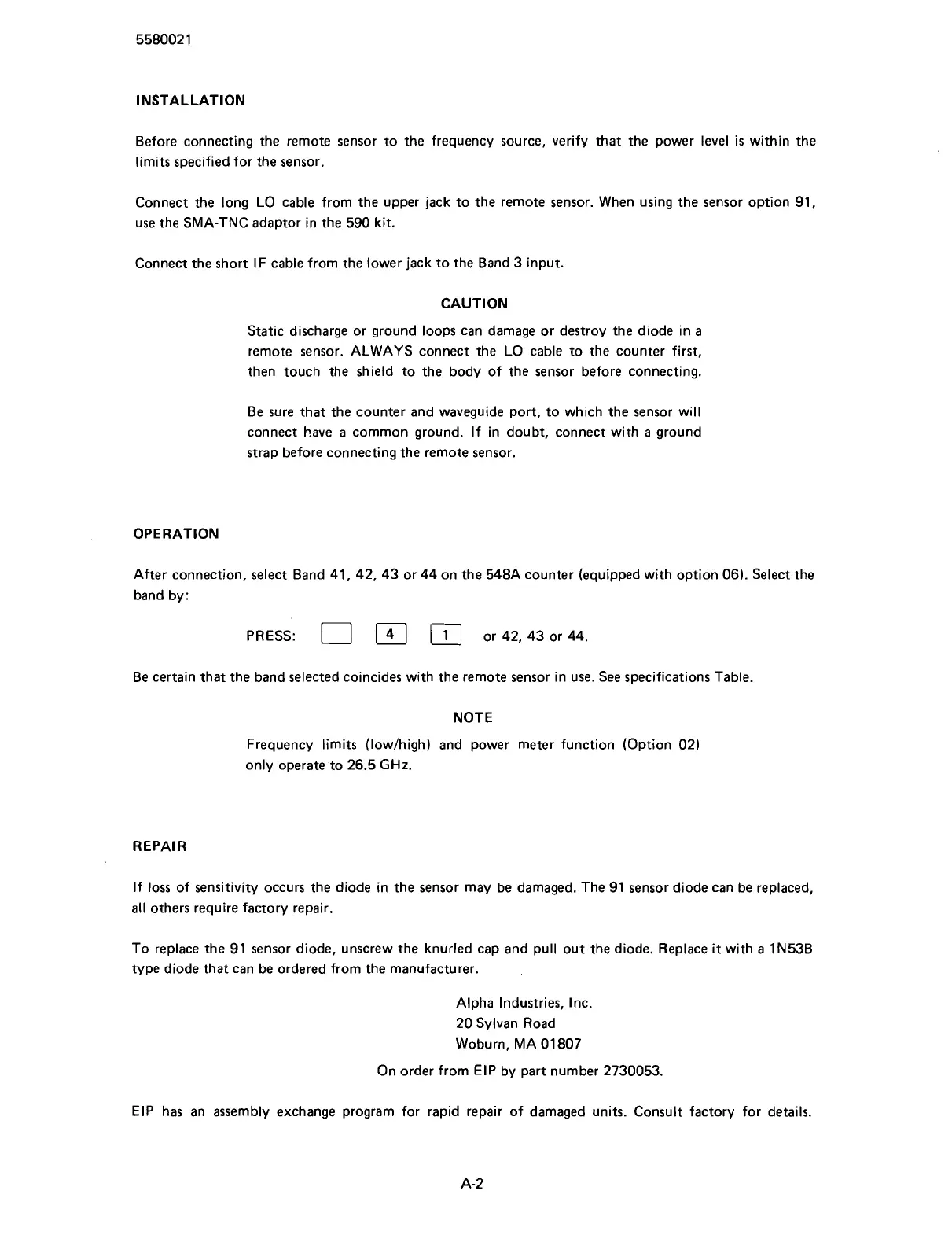 Before connecting the remote sensor to the frequency source, verify that the power level