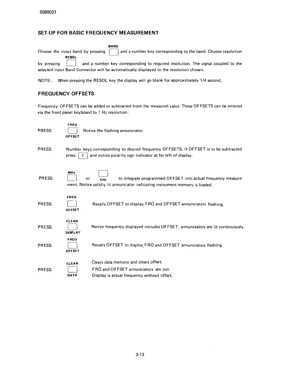 PRESS: Number keys corresponding to desired frequency OFFSETS. If OFFSET is