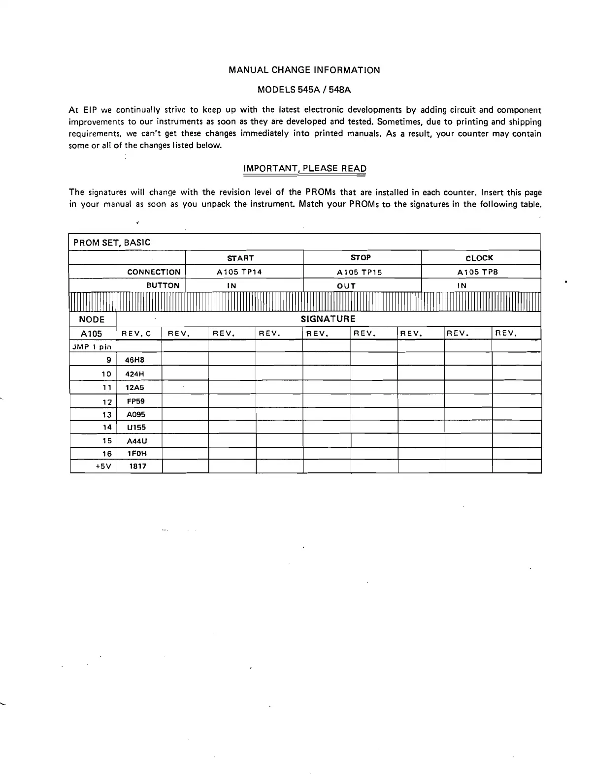 you unpack the instrument. Match your PROMS to the signatures in the following table.