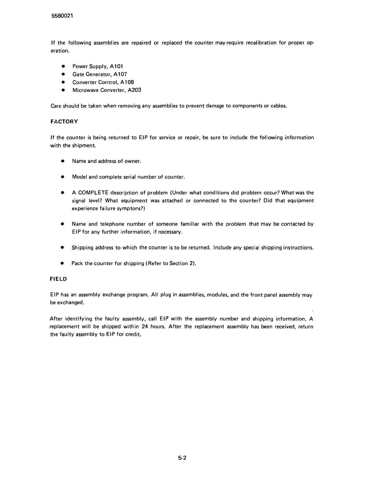 If the following assemblies are repaired or replaced the counter may require recalibration for proper op-