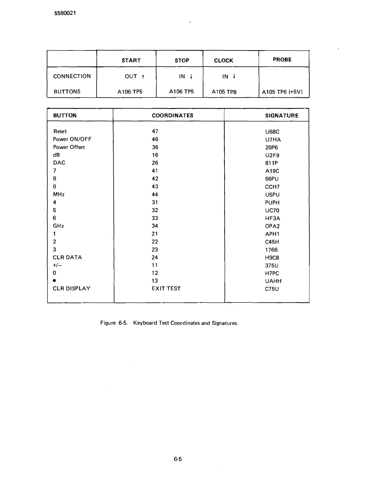 Figure 6-5. Keyboard Test Coordinates and Signatures.