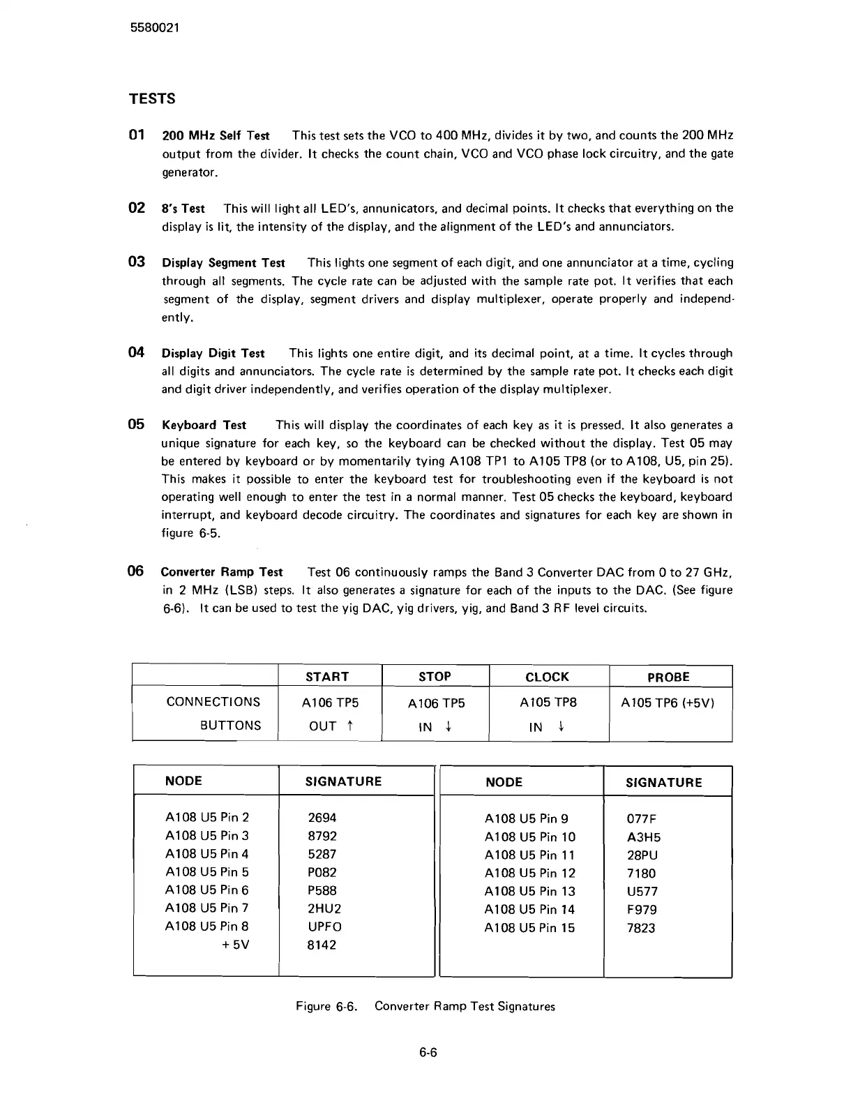 unique signature for each key, so the keyboard can be checked without the display. Test 05 may