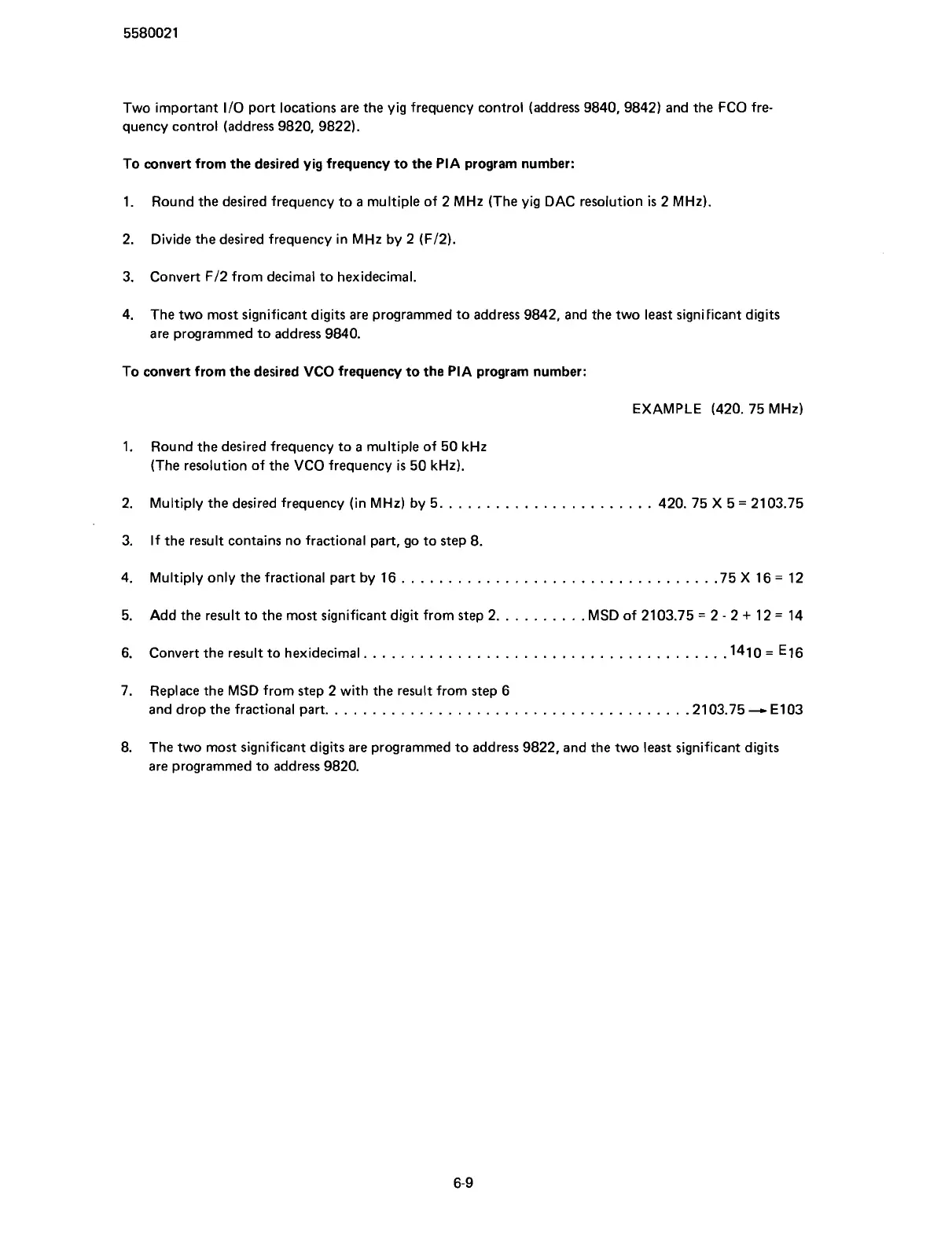 port locations are the yig frequency control (address 9840, 9842) and the FCO fre-