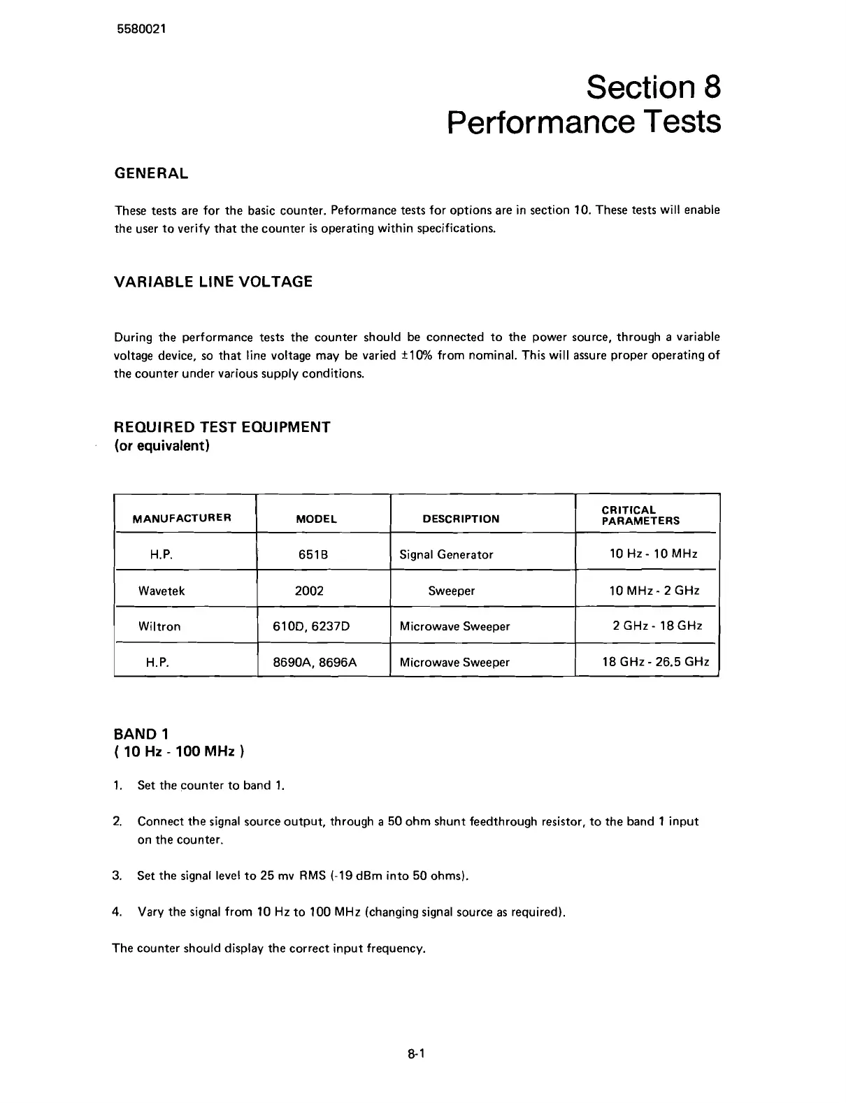 Vary the signal from 10 Hz to 100 MHz (changing signal source