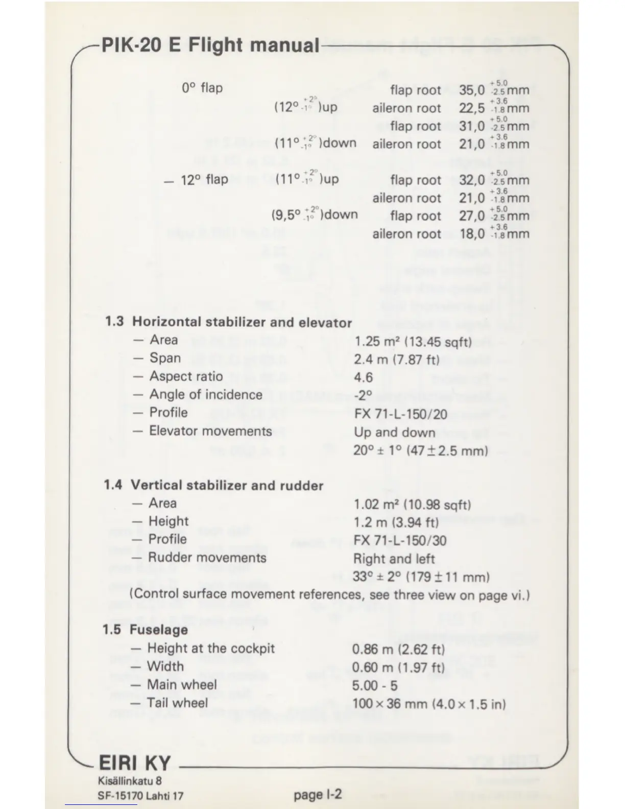 Eiri KY PIK-20 E - Horizontal Stabilizer and Elevator; Vertical Stabilizer and Rudder; Fuselage