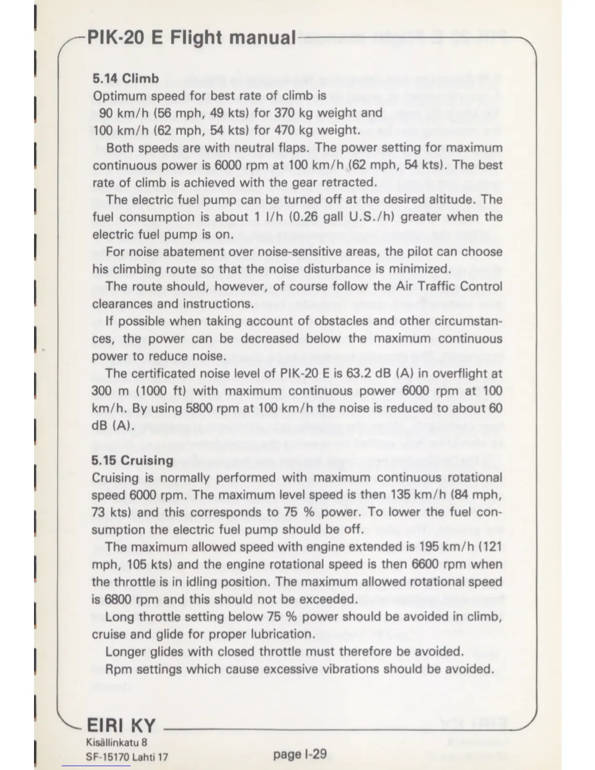 Eiri KY PIK-20 E - Climb; Cruising
