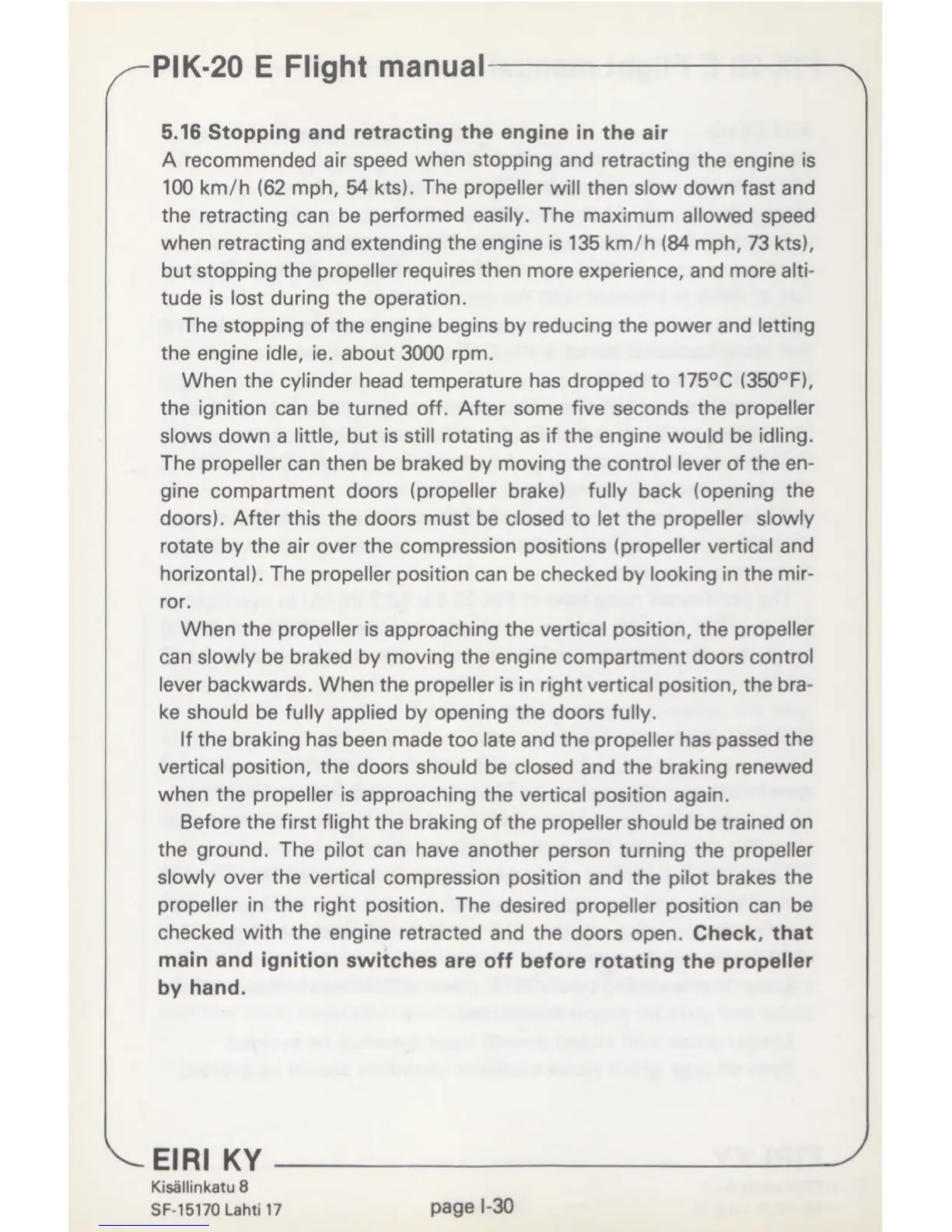 Eiri KY PIK-20 E - Stopping and Retracting the Engine in the Air