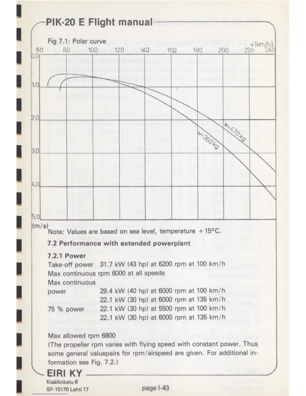 Eiri KY PIK-20 E - Performance with Extended Powerplant