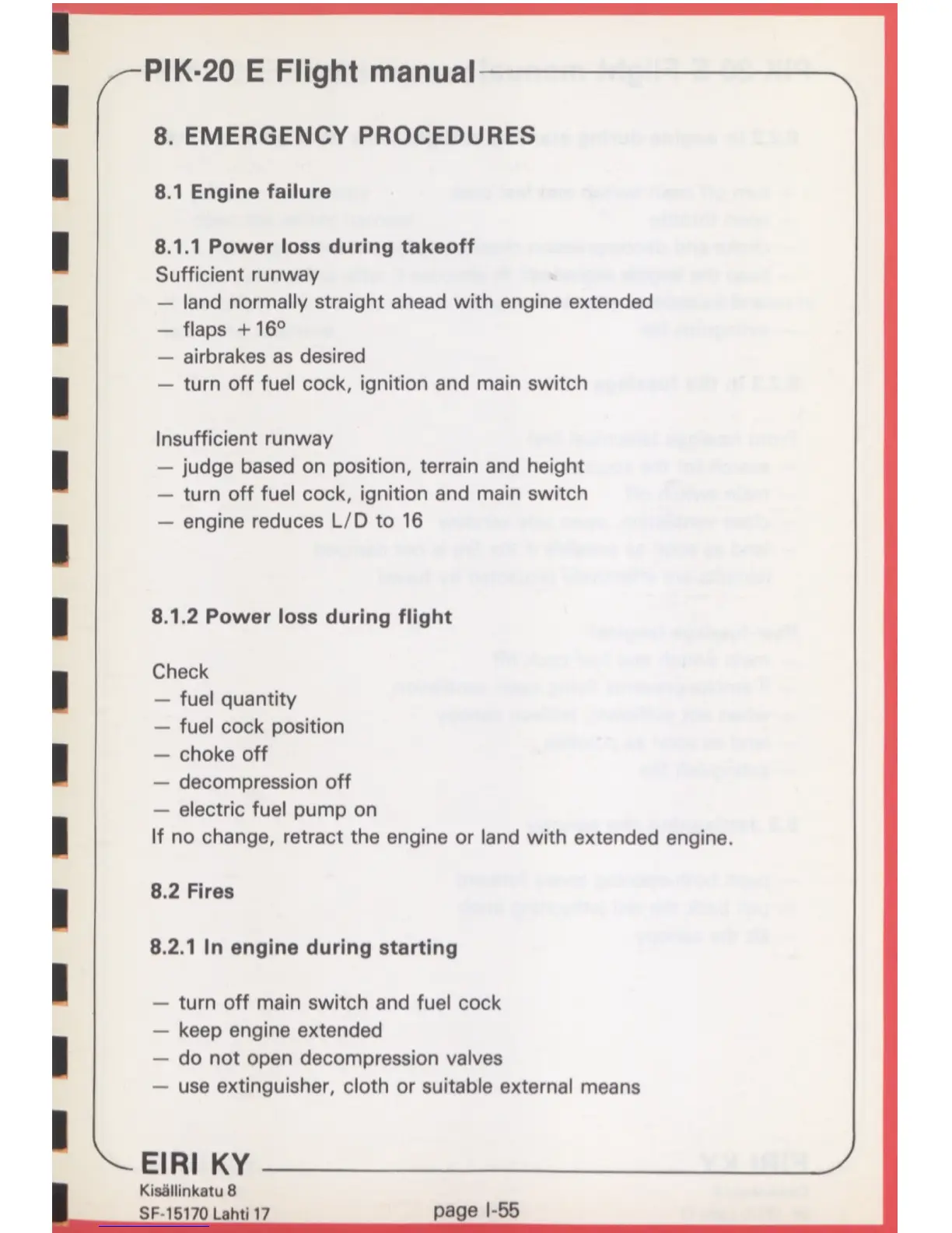 Eiri KY PIK-20 E - Emergency Procedures; Engine Failure; Fires -55