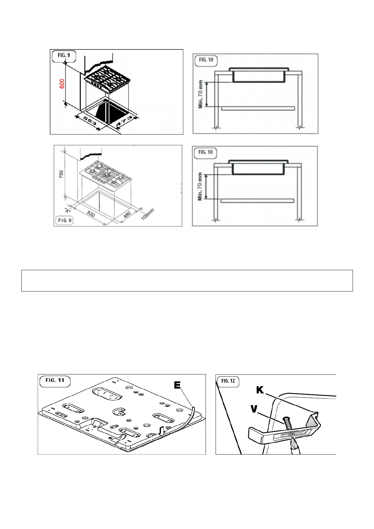 Under the hob it is necessary to always apply a panel of separation in wood, positioned to a least distance of 70 mm by