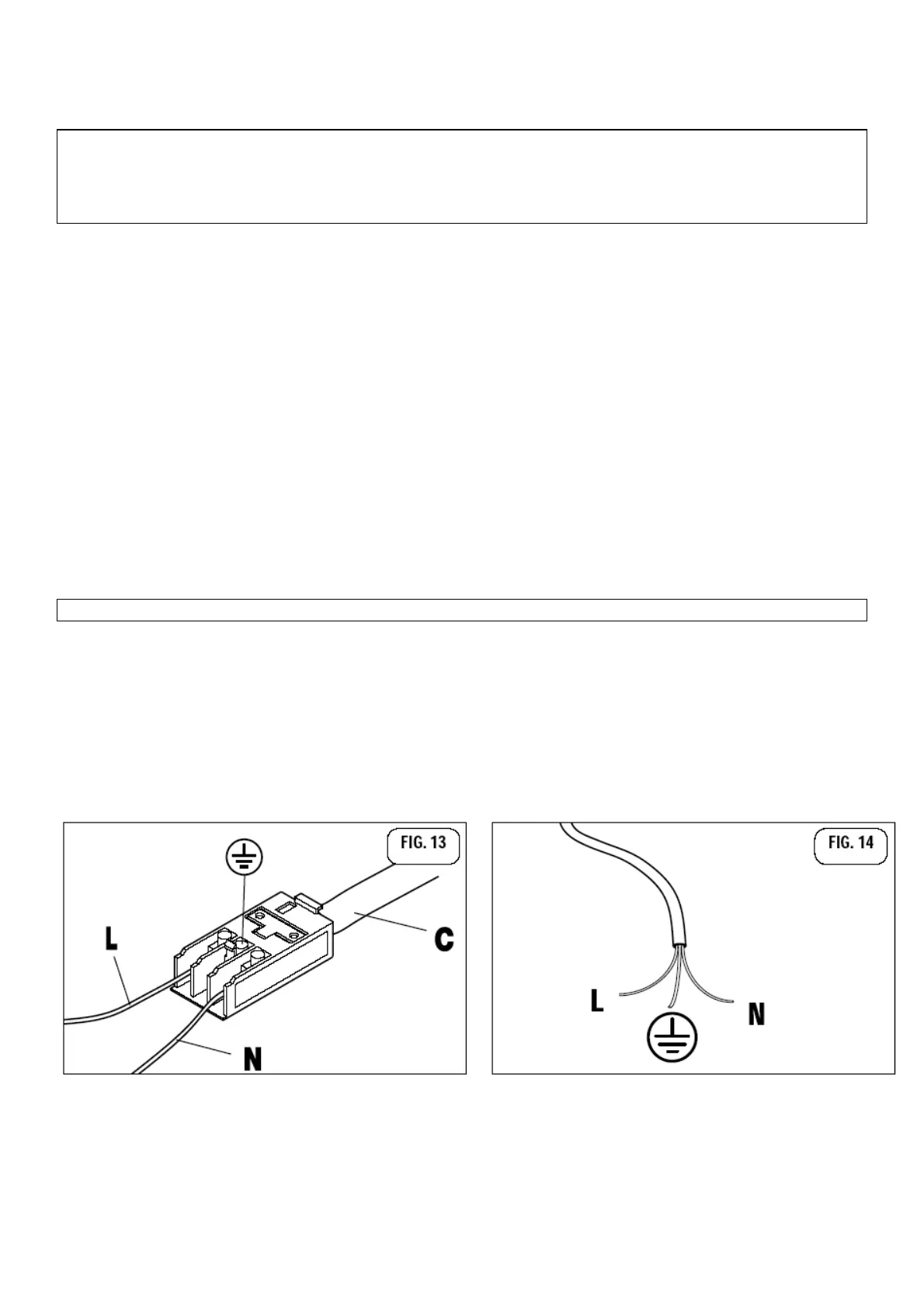 • Fit to the power cable (C)(if without – fig. 13) a standardized plug, suitable for the load which is indicated on the