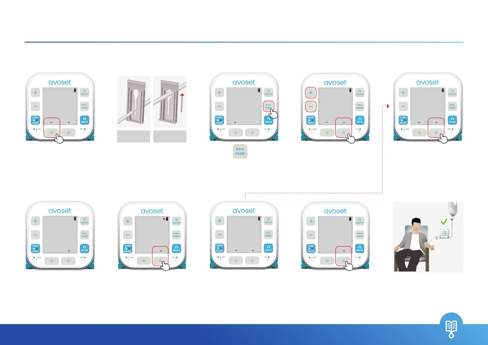 Following cassette insertion to the pump, prime the administration set to ll it with liquid and remove all air.