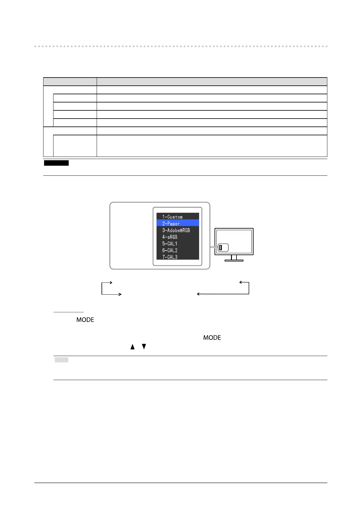 • You can disable a specic mode to be selected. For more information, see “3-2. Skipping Unused Display Modes” (page 33).