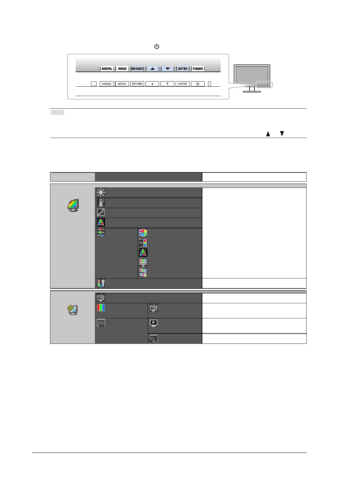 • In CAL mode, the brightness cannot be adjusted even though the button guide is displayed above the