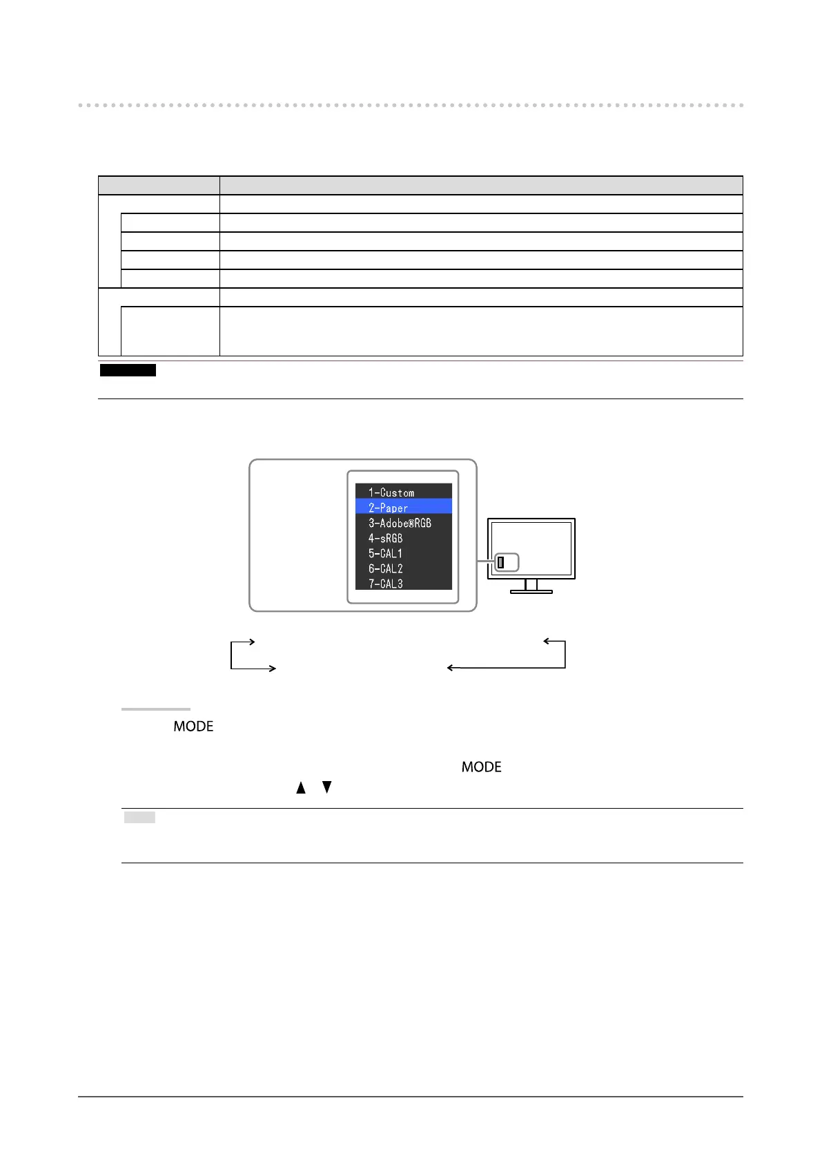 • You can disable a specic mode to be selected. For more information, see “3-2. Skipping Unused Display Modes” (page 34).