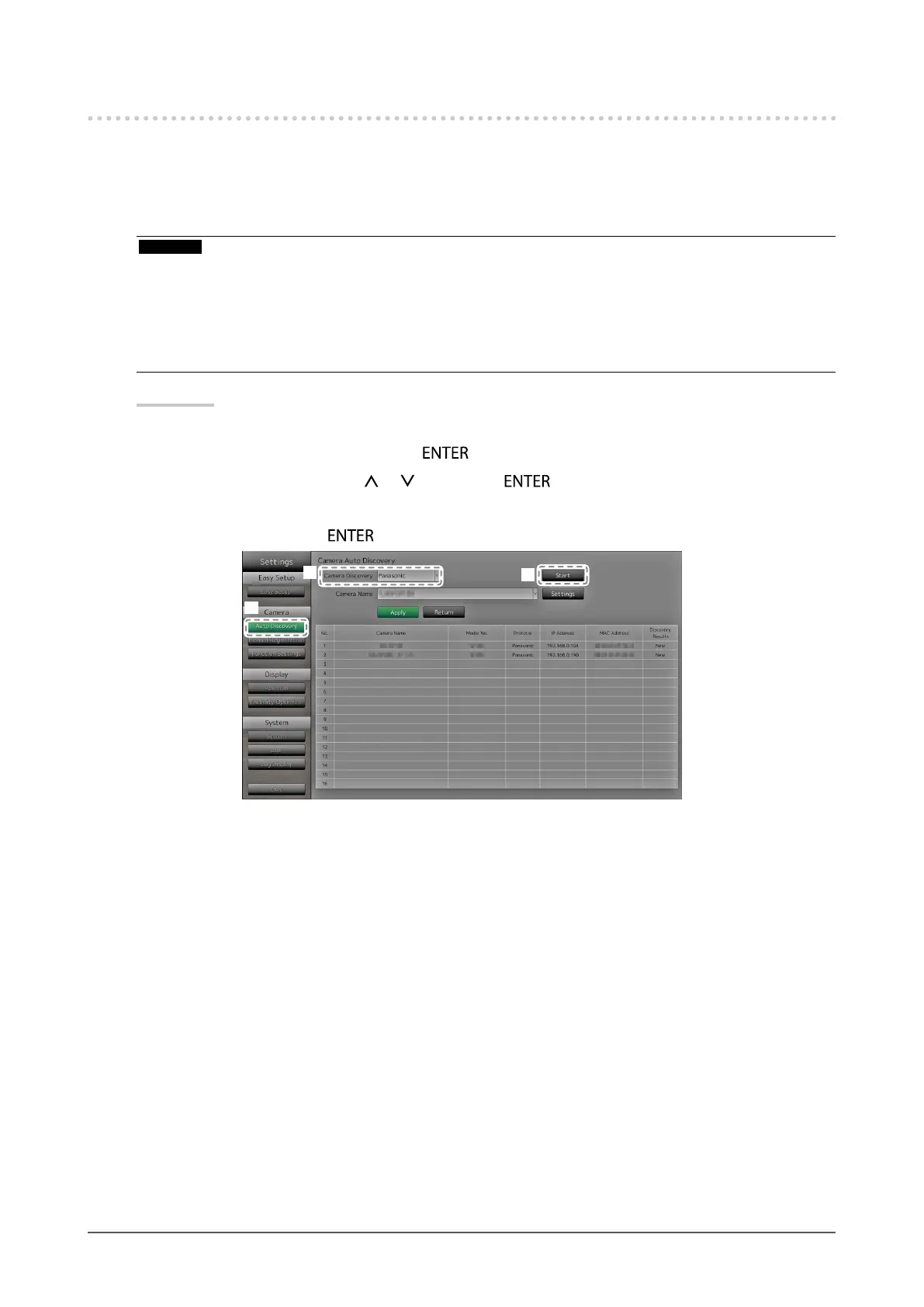 • Only the network cameras installed in the same subnet as the monitor are detected. If a network camera is
