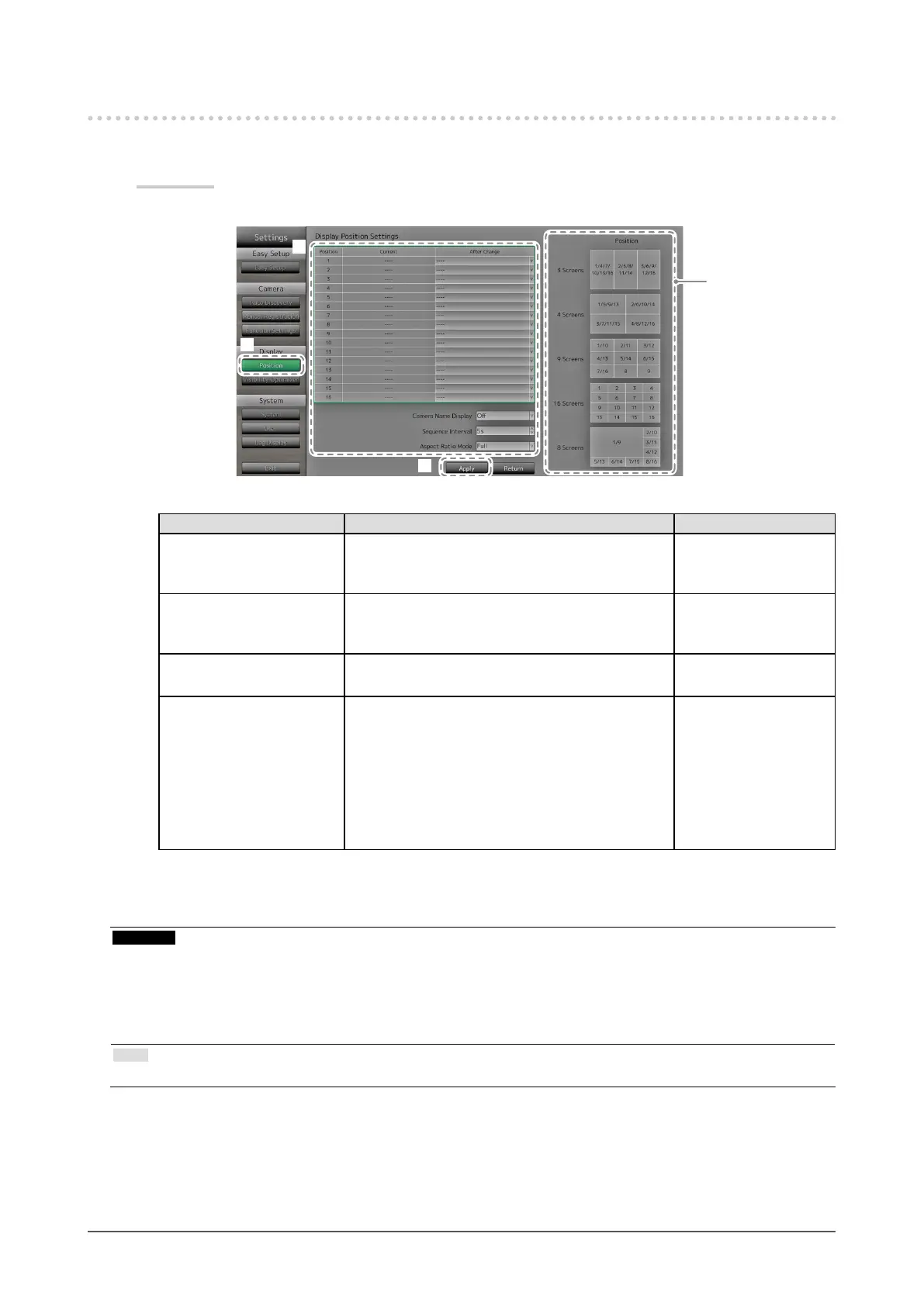 • All registered network cameras must be congured. A network camera can only be set for one display position.