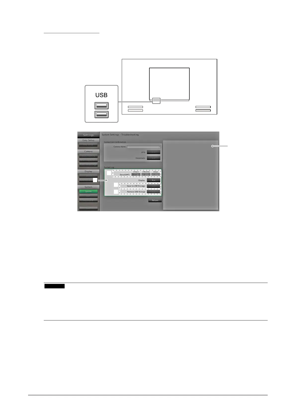 1. Connect a USB storage device to the USB downstream port on the back of the monitor.