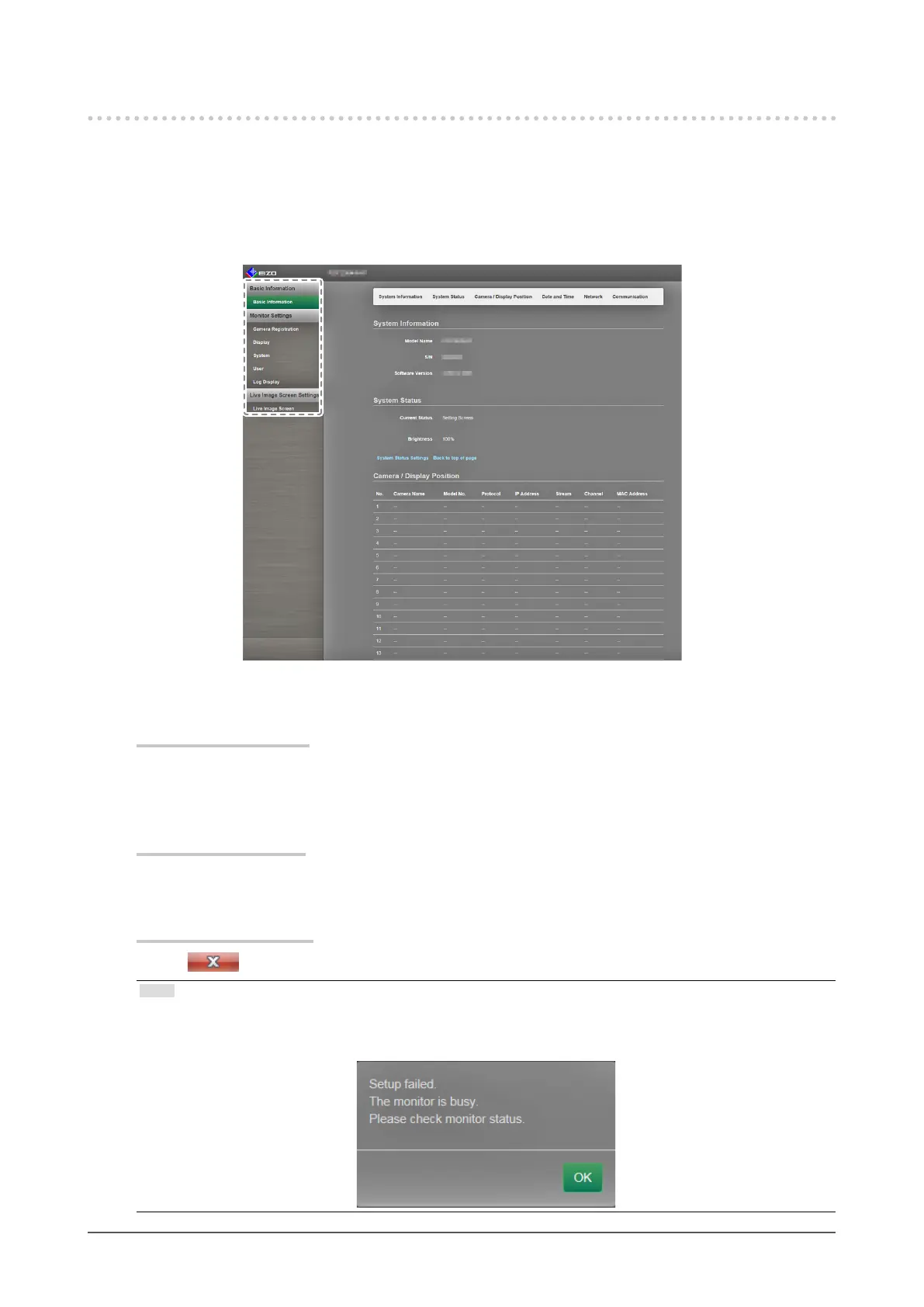 • If auto discovery is in progress on the monitor, or the setting dialog box is displayed in the browser, operations