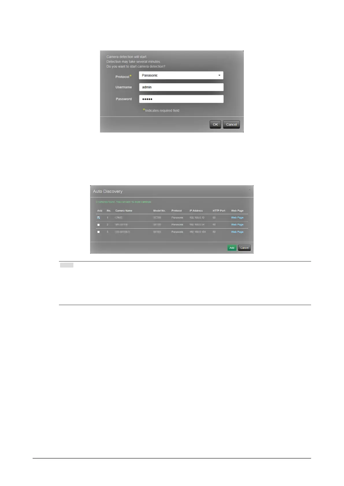 • If “Cancel” is selected during camera detection, a list of cameras detected up to the time of canceling will