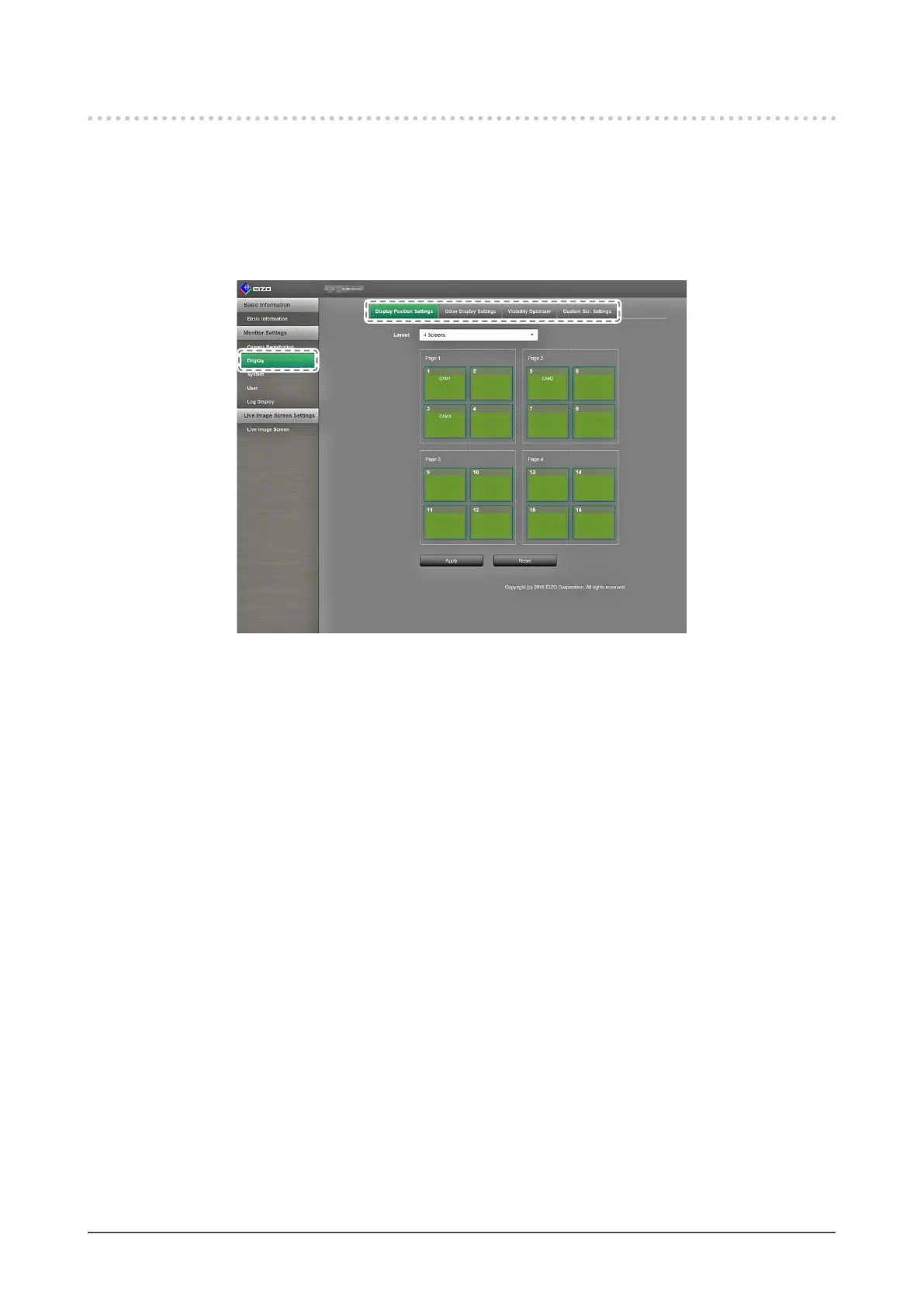 You can congure settings such as the display positions of network cameras, and displaying camera