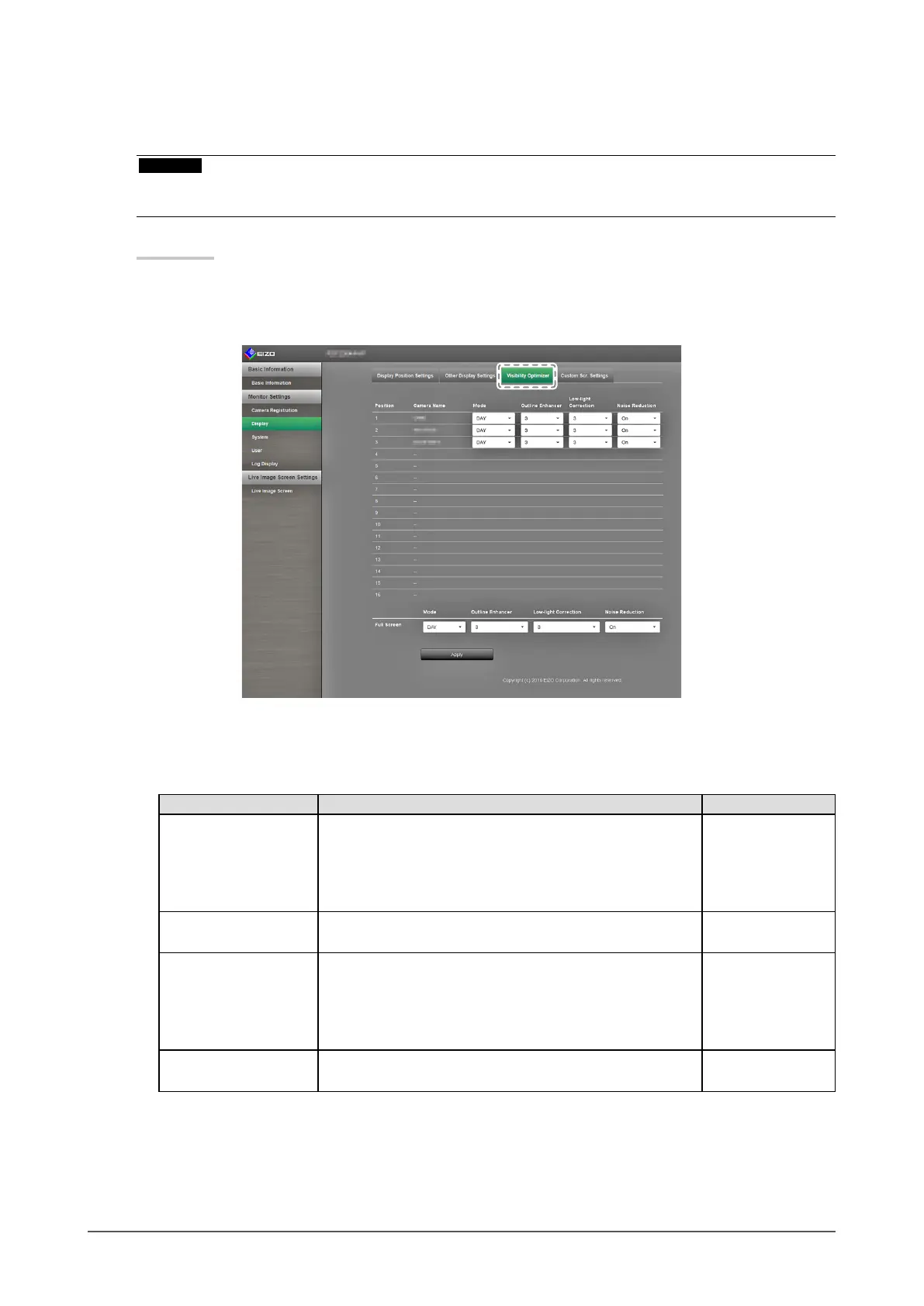 • Information such as camera name will be displayed as a blank row for display positions that have not been