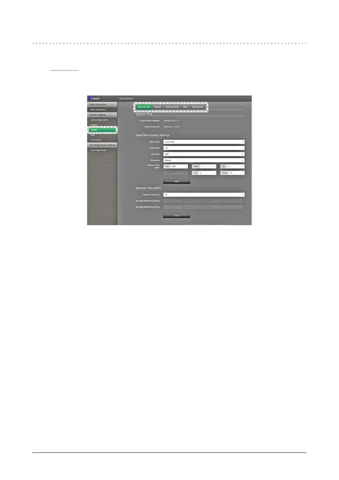 1. In the “Monitor Settings”, select “System”.