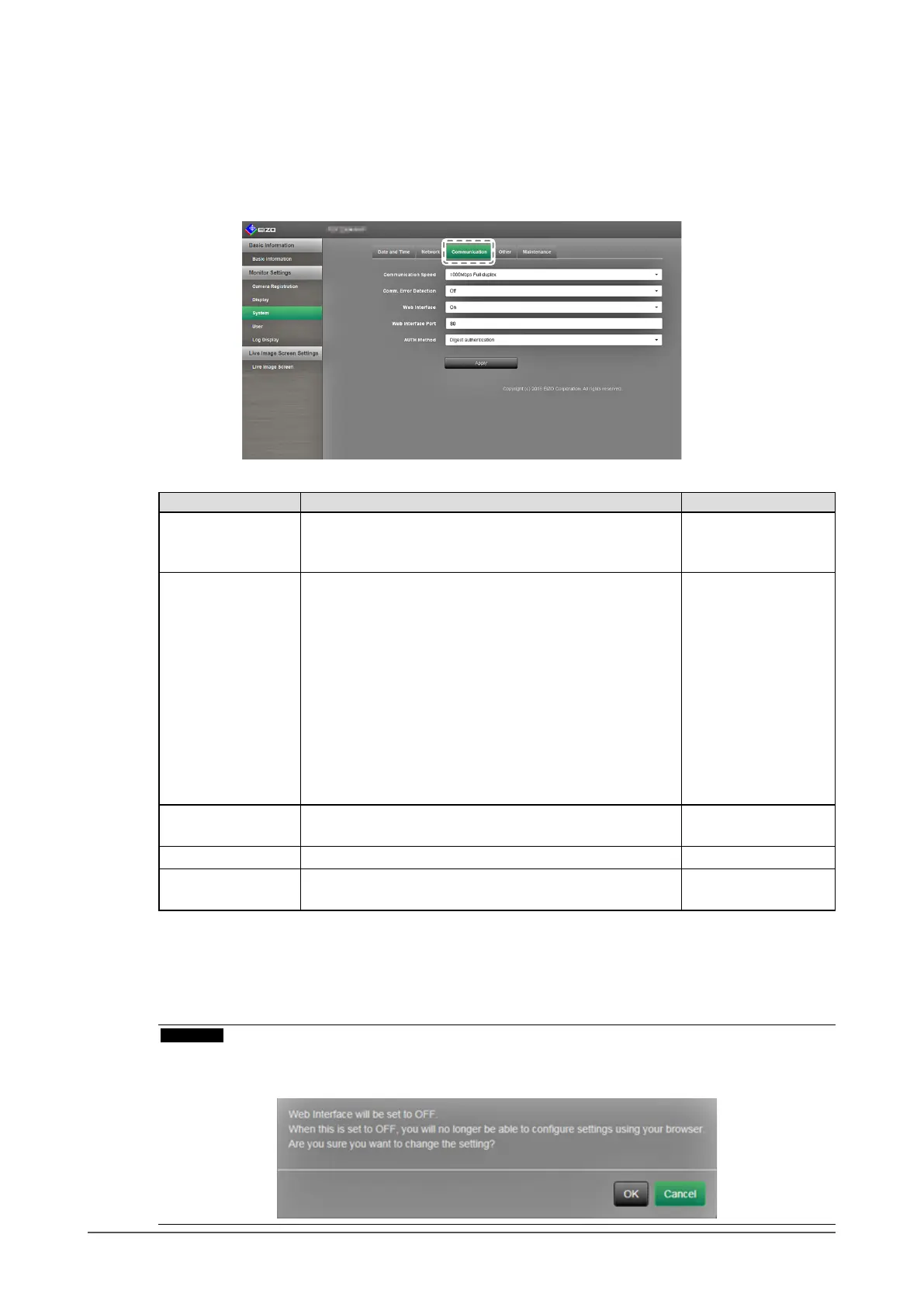*1 The web interface cannot be set to Off if USB lock (page 64) and Remote lock (page 64) are set