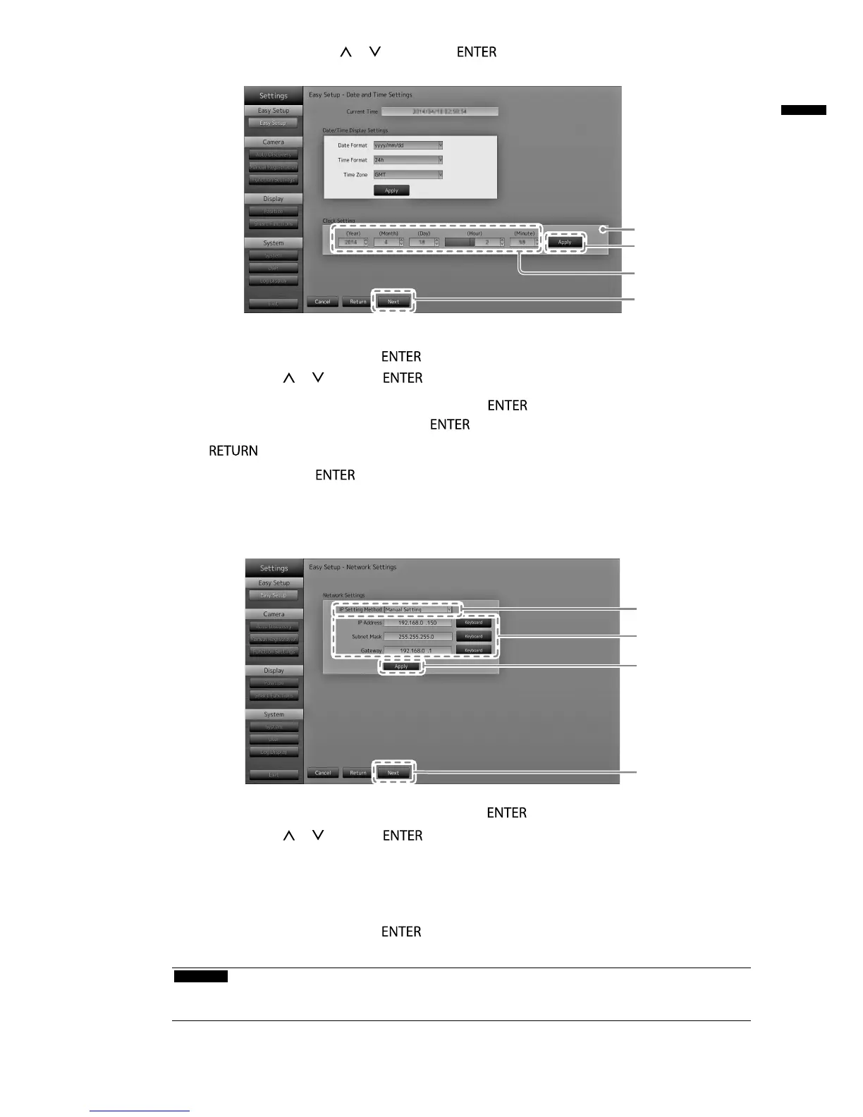 Input the respective values. For details on the data entry method, refer to “Entering characters” (page 15).