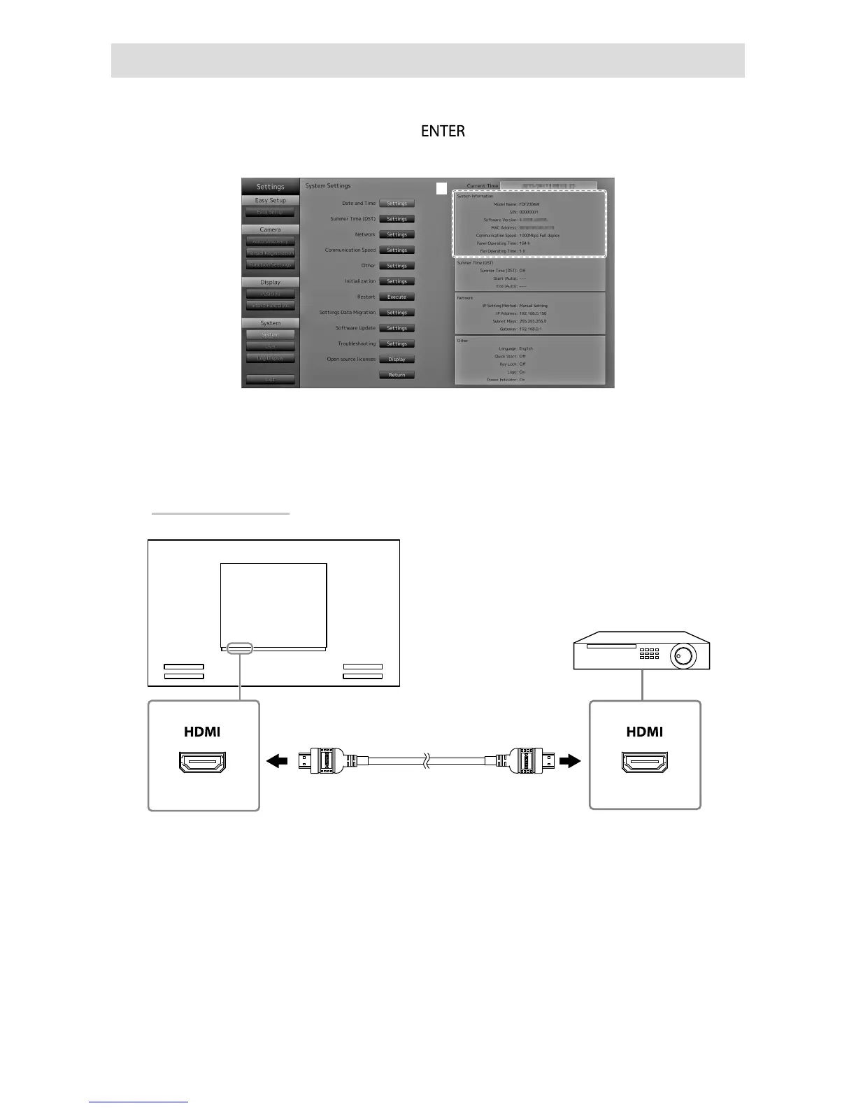 Connect an HDMI device to this product to switch over the network camera display to the HDMI