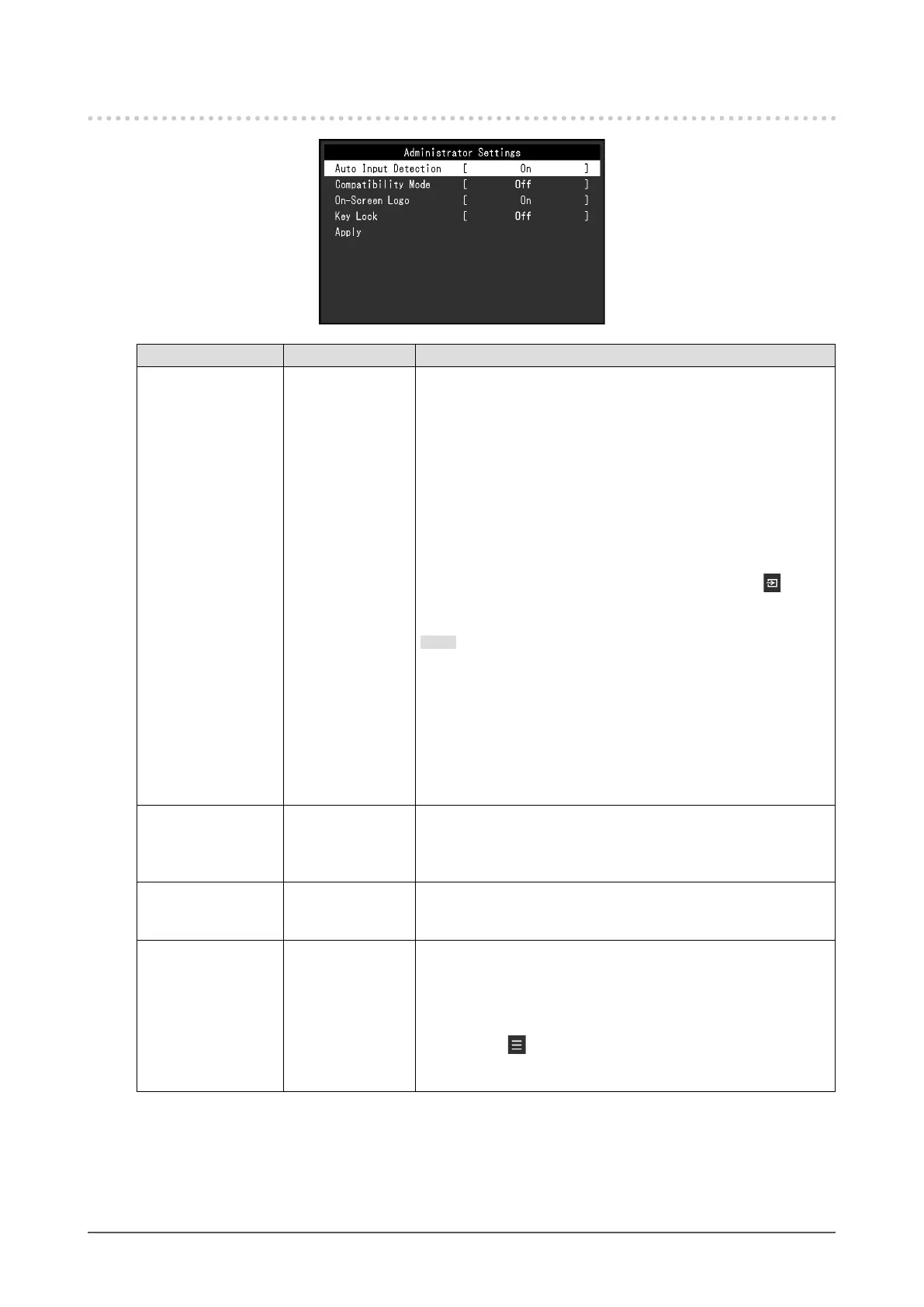 When this function is set to “Off”, the EIZO logo does not appear.