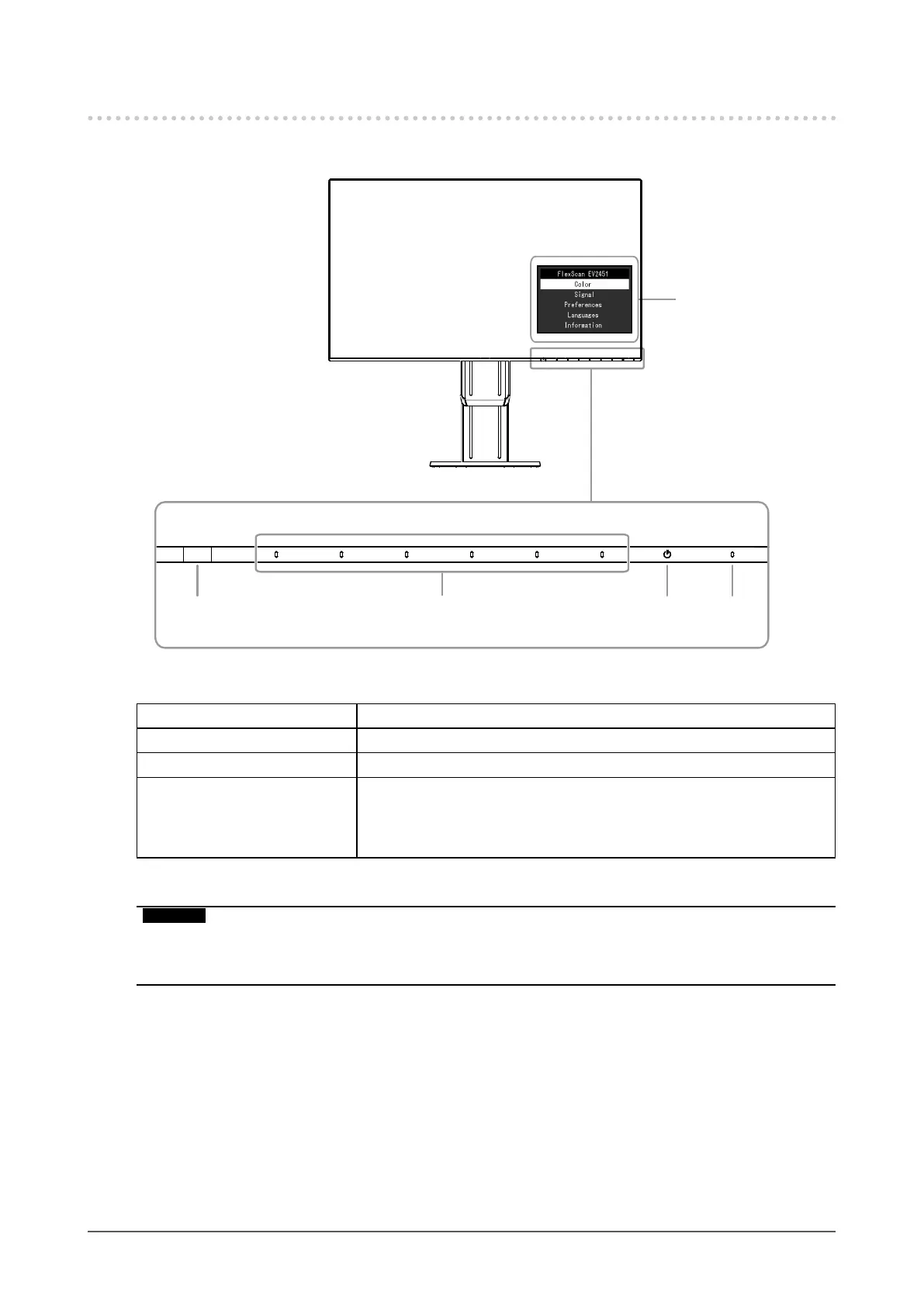 4. Power indicator Indicates the monitor’s operation status.