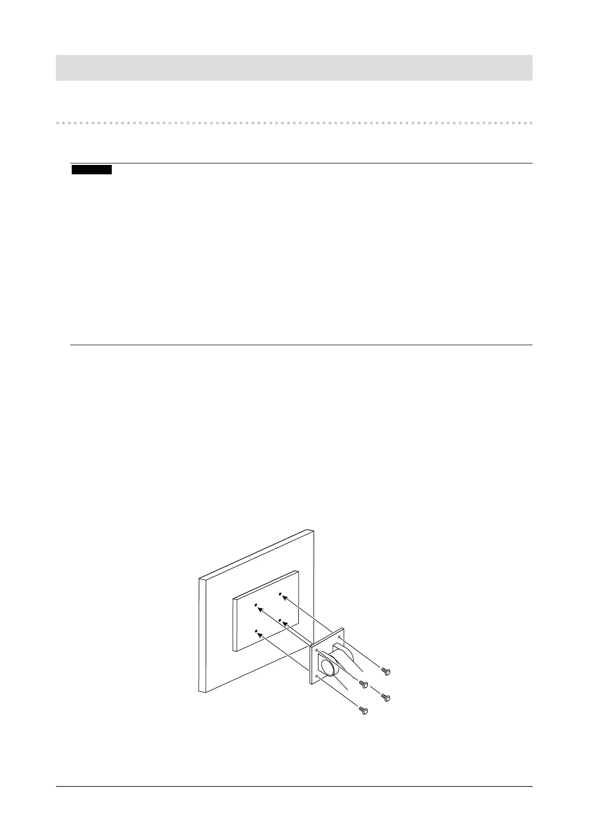 Secure the monitor to the arm or stand using the screws specied in the User’s Manual of the arm or