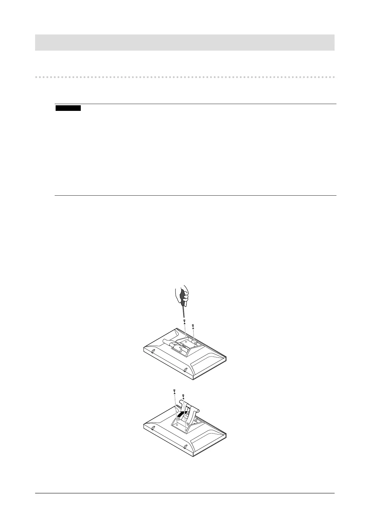 Prepare a screwdriver. Loosen the screws (four) securing the unit and the stand with the screwdriver.
